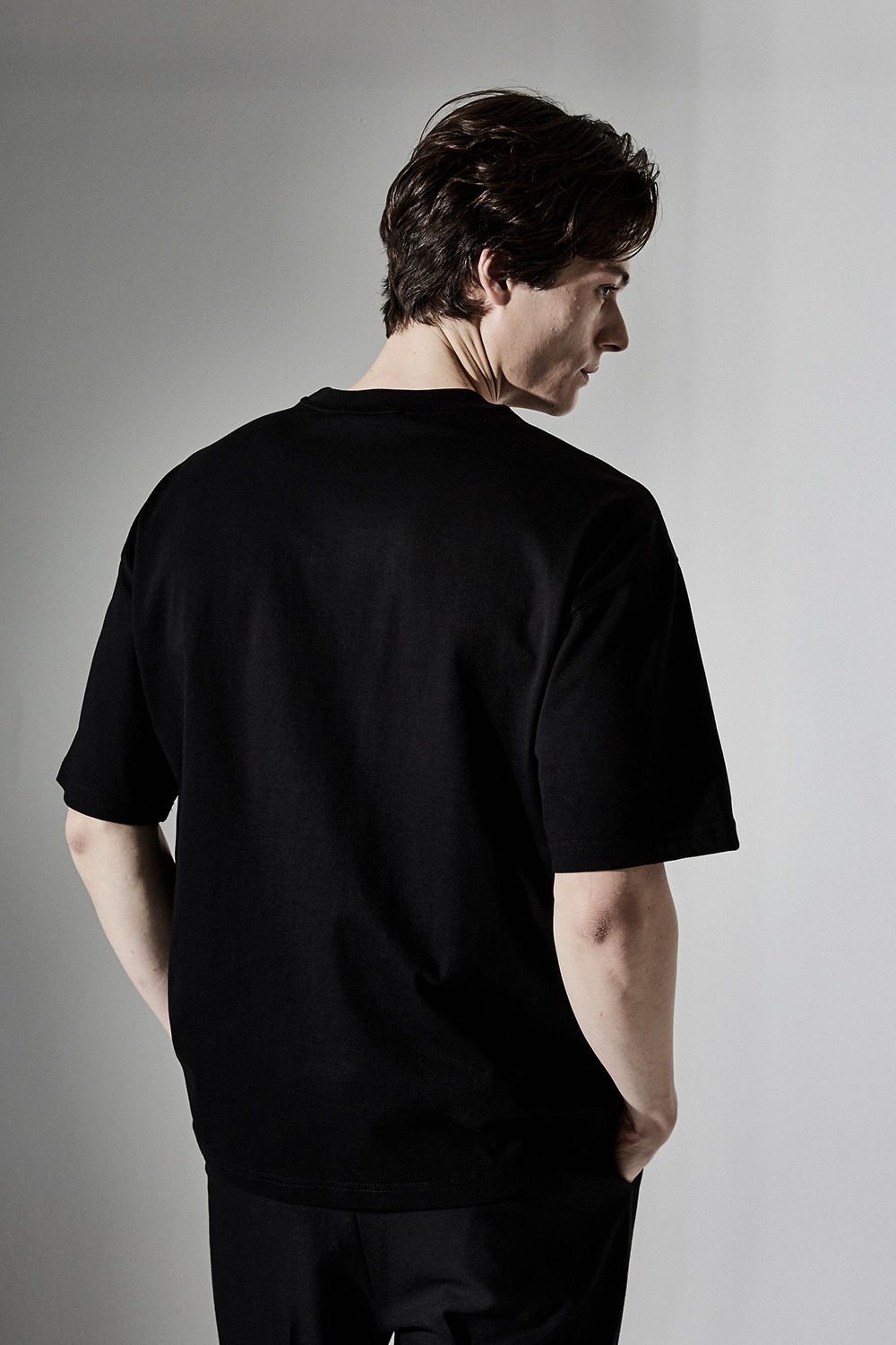 세미-오버핏으로 어깨선이 살짝 내려오는 트렌디한 디자인에
