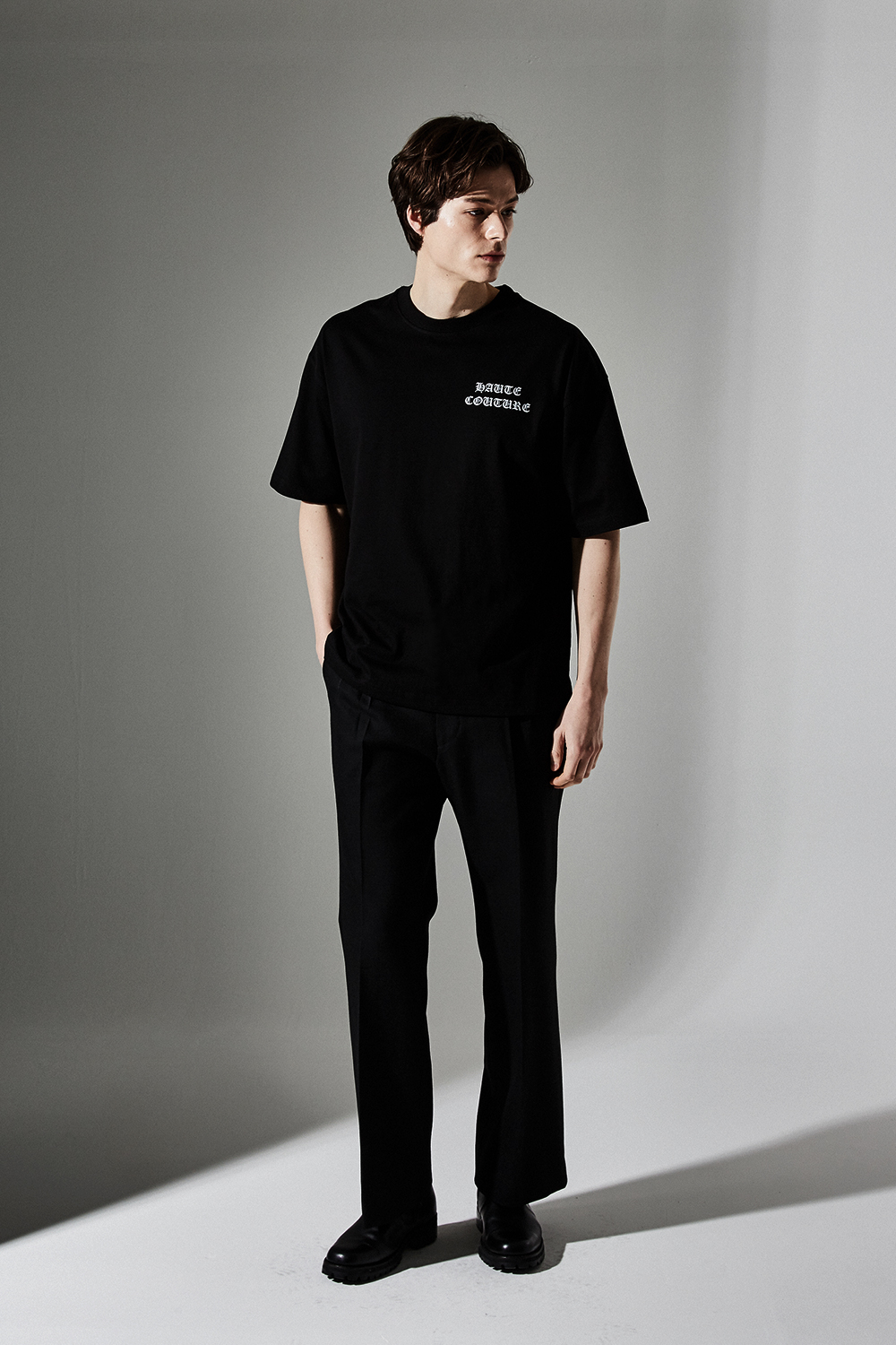 세미-오버핏으로 어깨선이 살짝 내려오는 트렌디한 디자인에