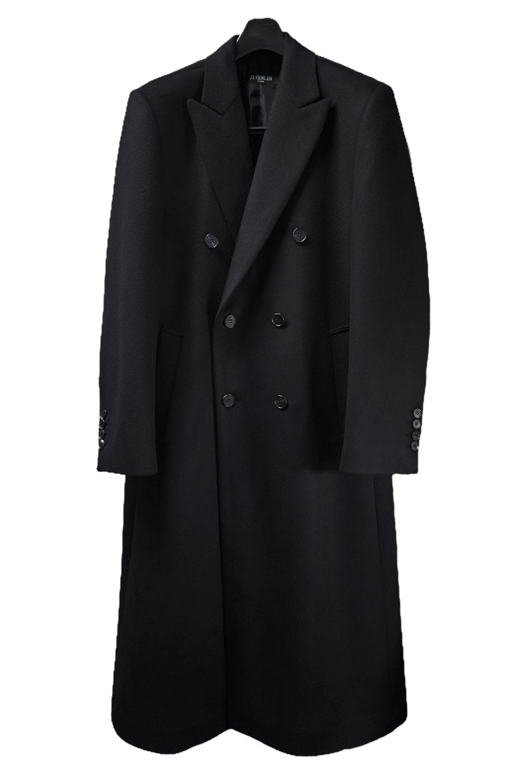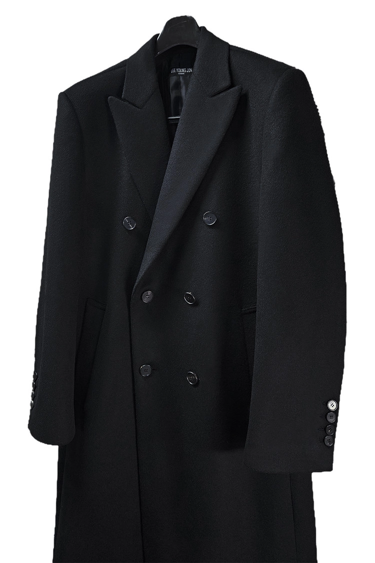 ESSENTIAL 울 100% 클래식 더블 블랙 옆포켓 슈퍼 롱코트SALE