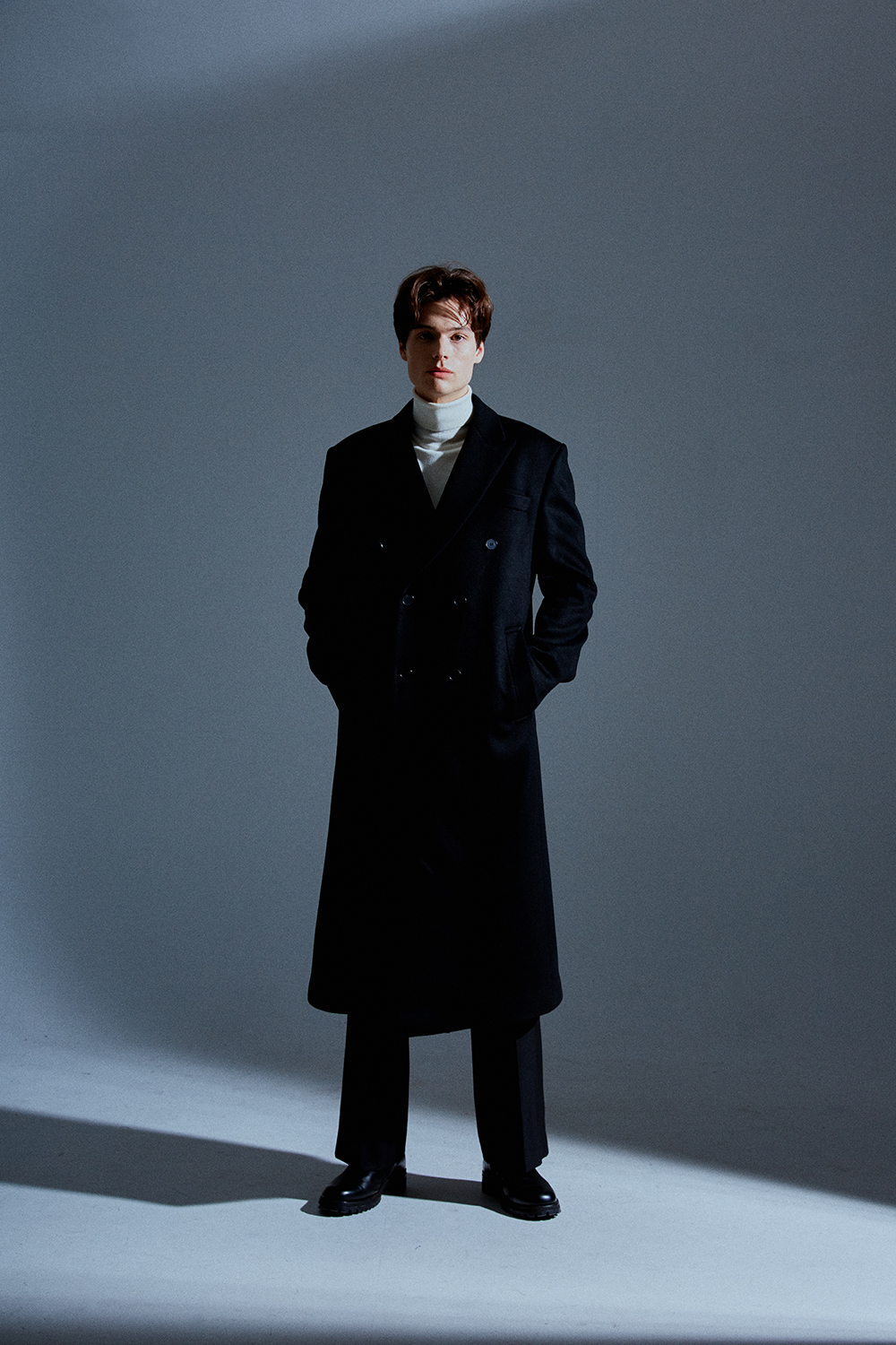 *울 소재의 고급스러운 윤기와 남성복 코트에 잘 어울리는