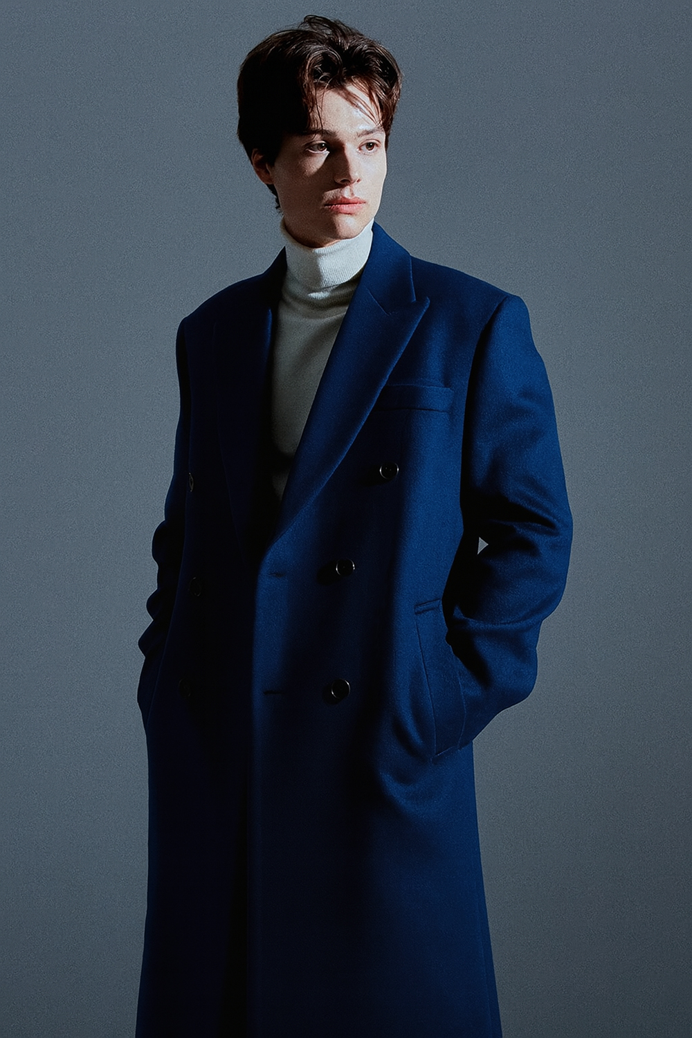 최고급 캐시미어 80% + 울 20% / 색상 DEEP-BLUE 딥-블루 / 소뿔단추 100%