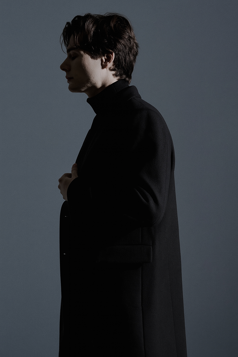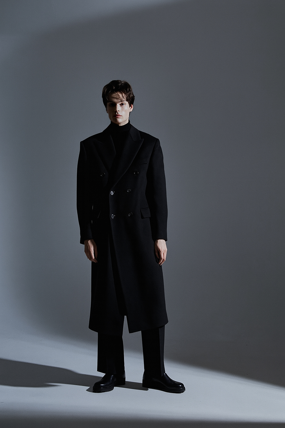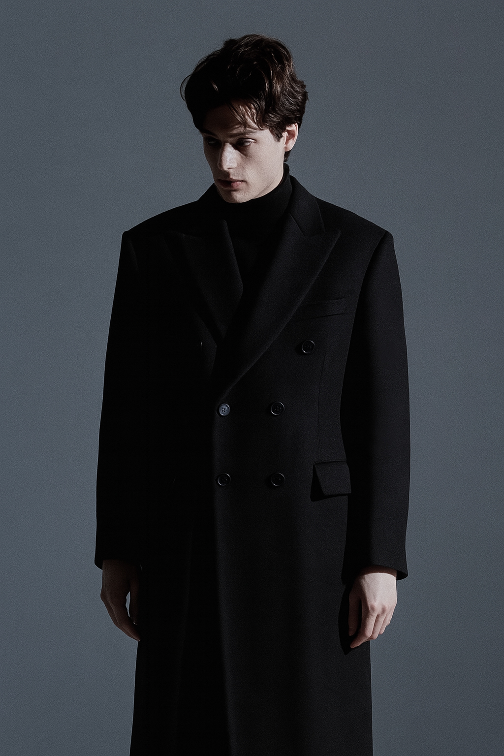 최고급 캐시미어 50% + 울 50% / 색상 BLACK 블랙 / 소뿔단추 100%