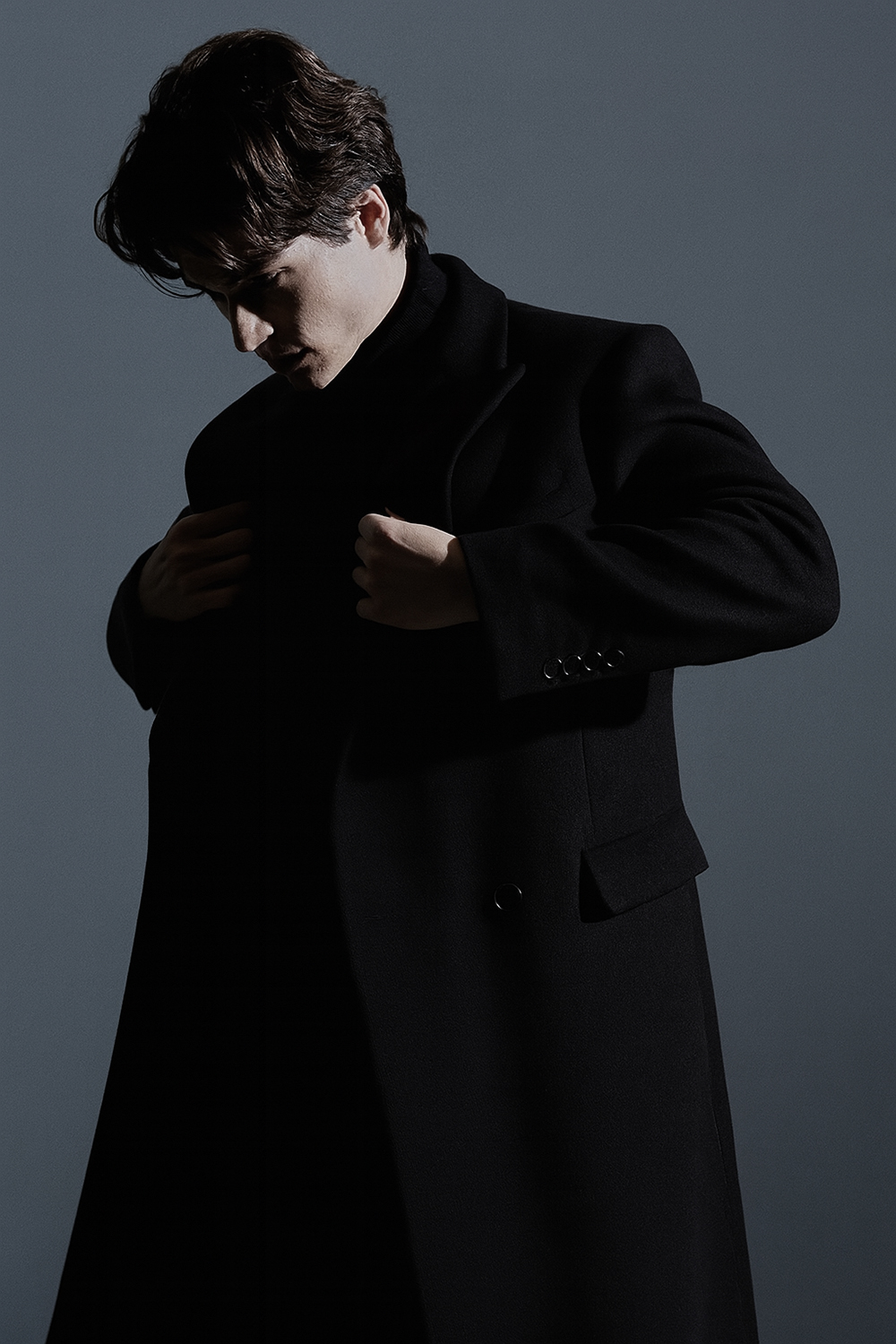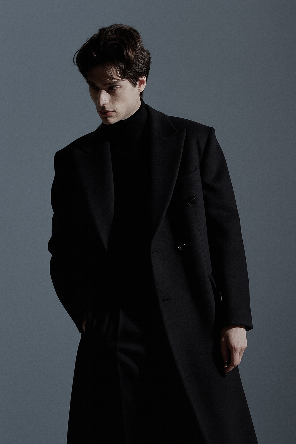 * 피크드 라펠의 클래식한 디자인 / 차콜-그레이의 고급스러운 원단