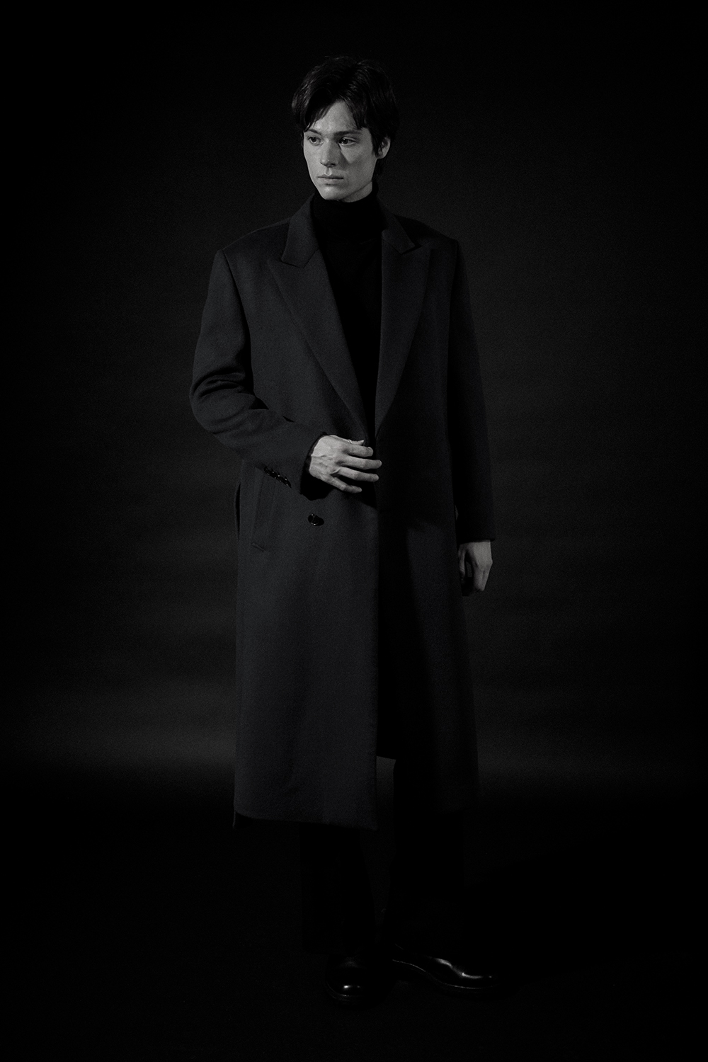 최고급 캐시미어 80% + 울 20% / 색상 BLACK 블랙 / 소뿔단추 100%