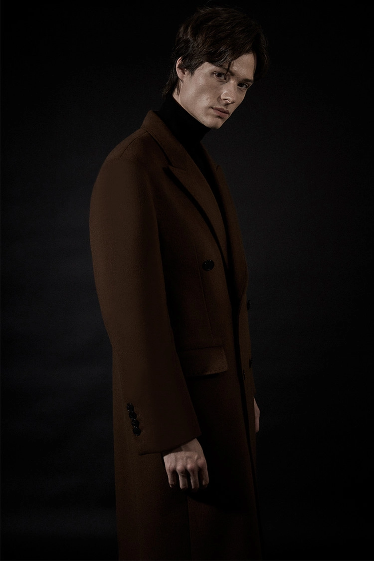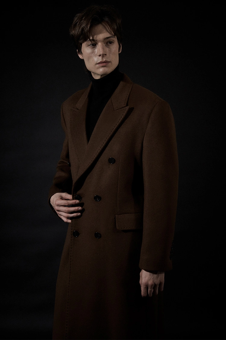 캐시미어 20% 호시스티치 딥-브라운 더블 슈퍼 롱코트SALE