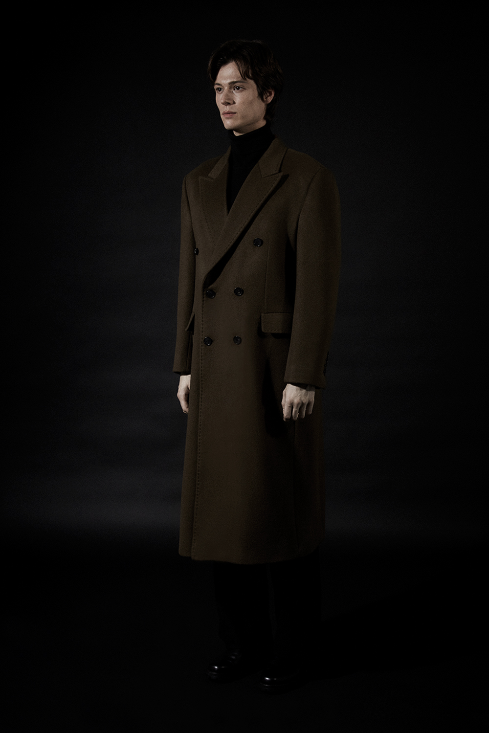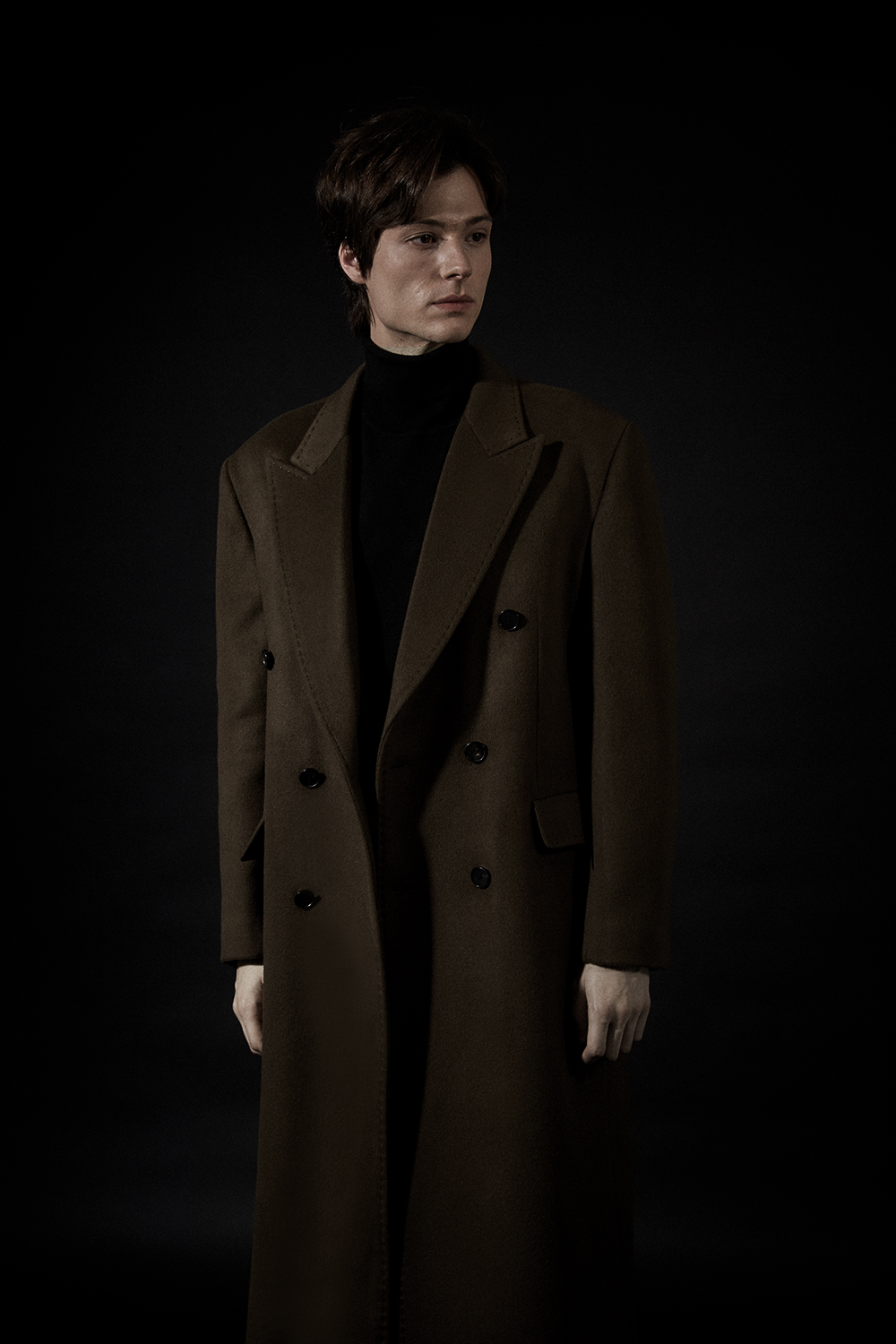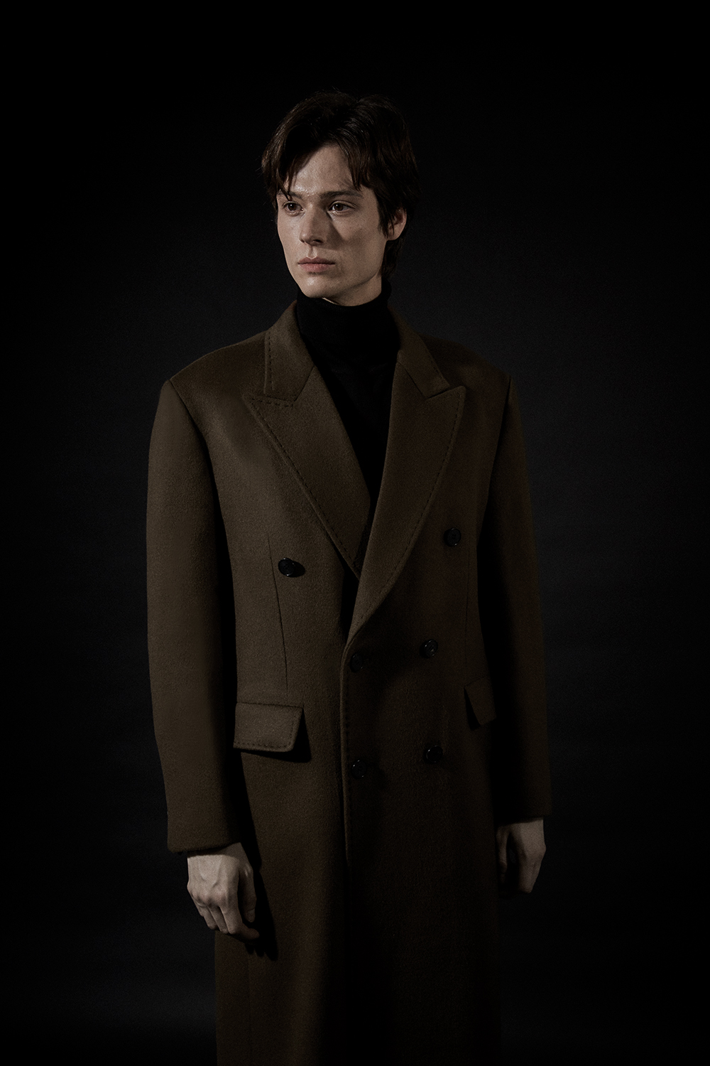 최고급 캐시미어 20% + 울 80% / 색상 DEEP-KHAKI 딥-카키 / 소뿔단추 100%