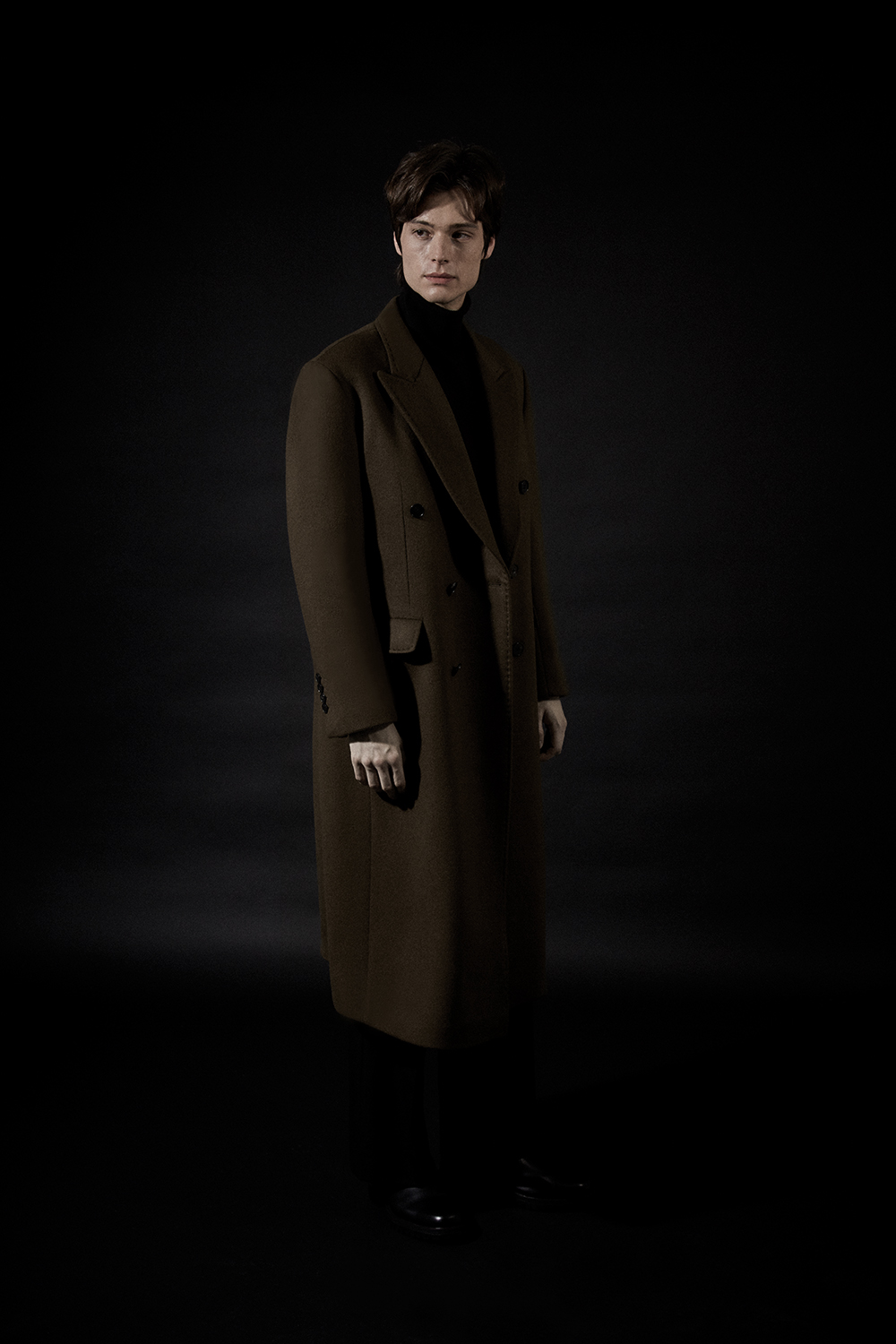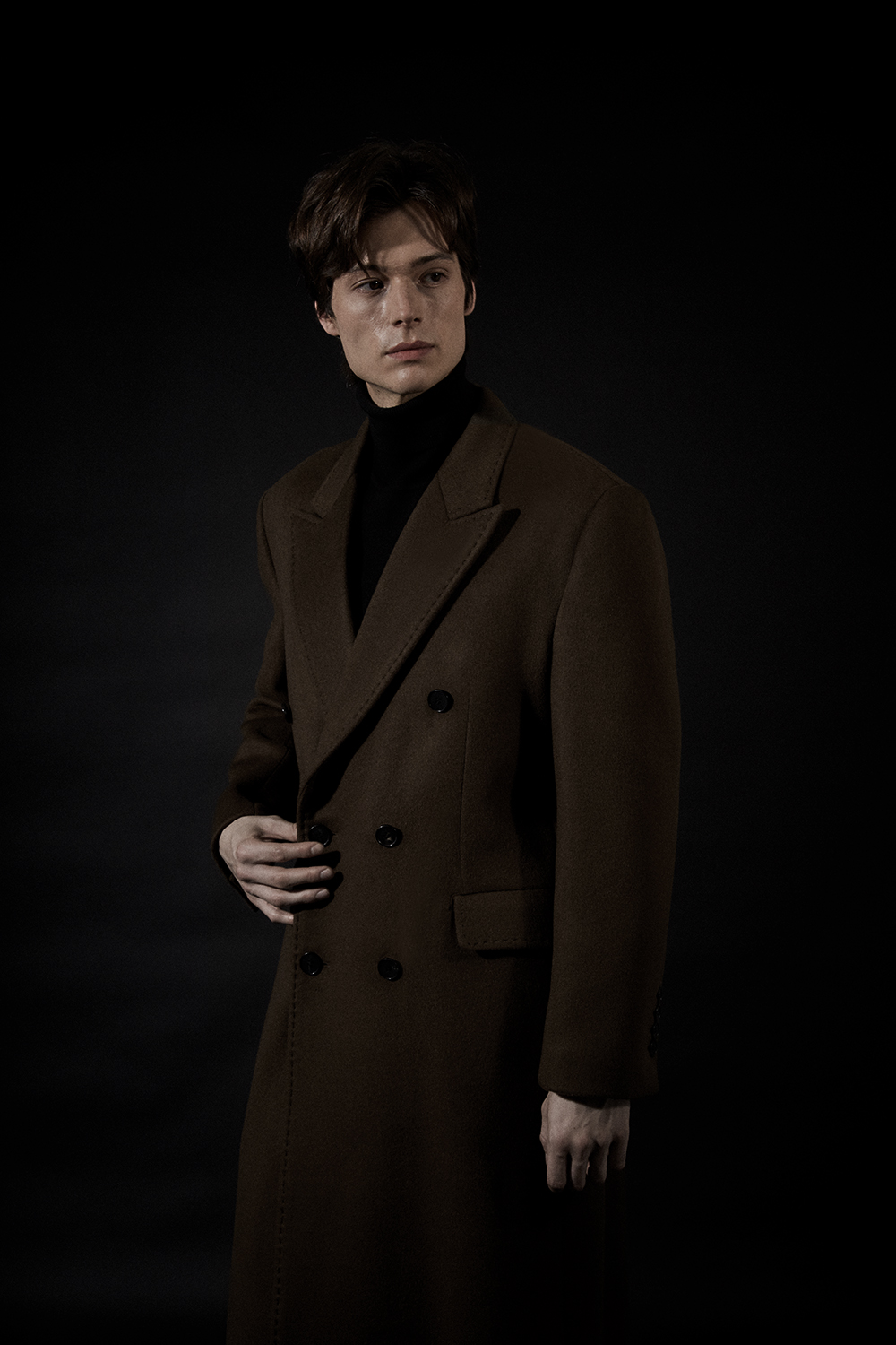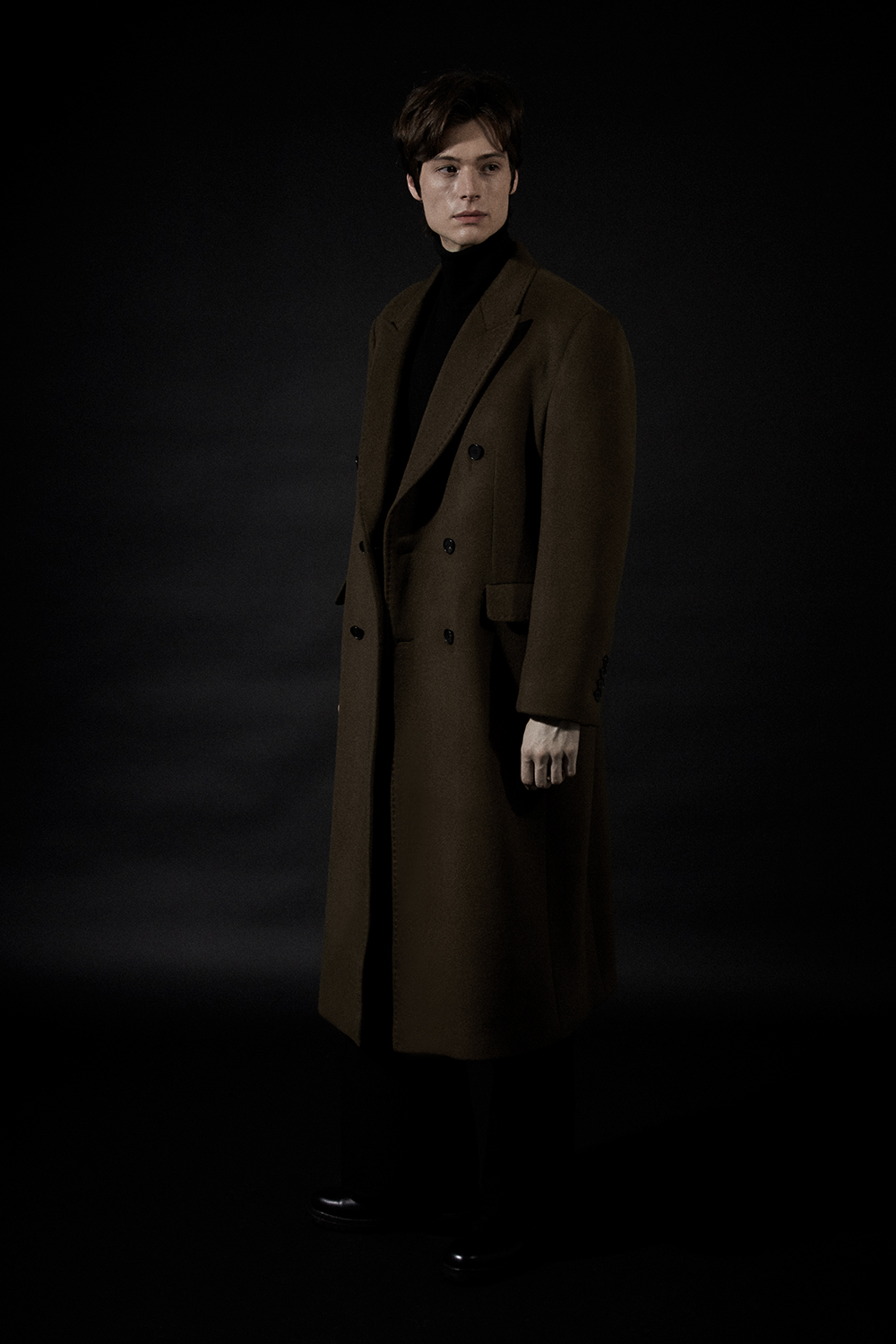 최고급 캐시미어 20% + 울 80% / 색상 DEEP-KHAKI 딥-카키 / 소뿔단추 100%