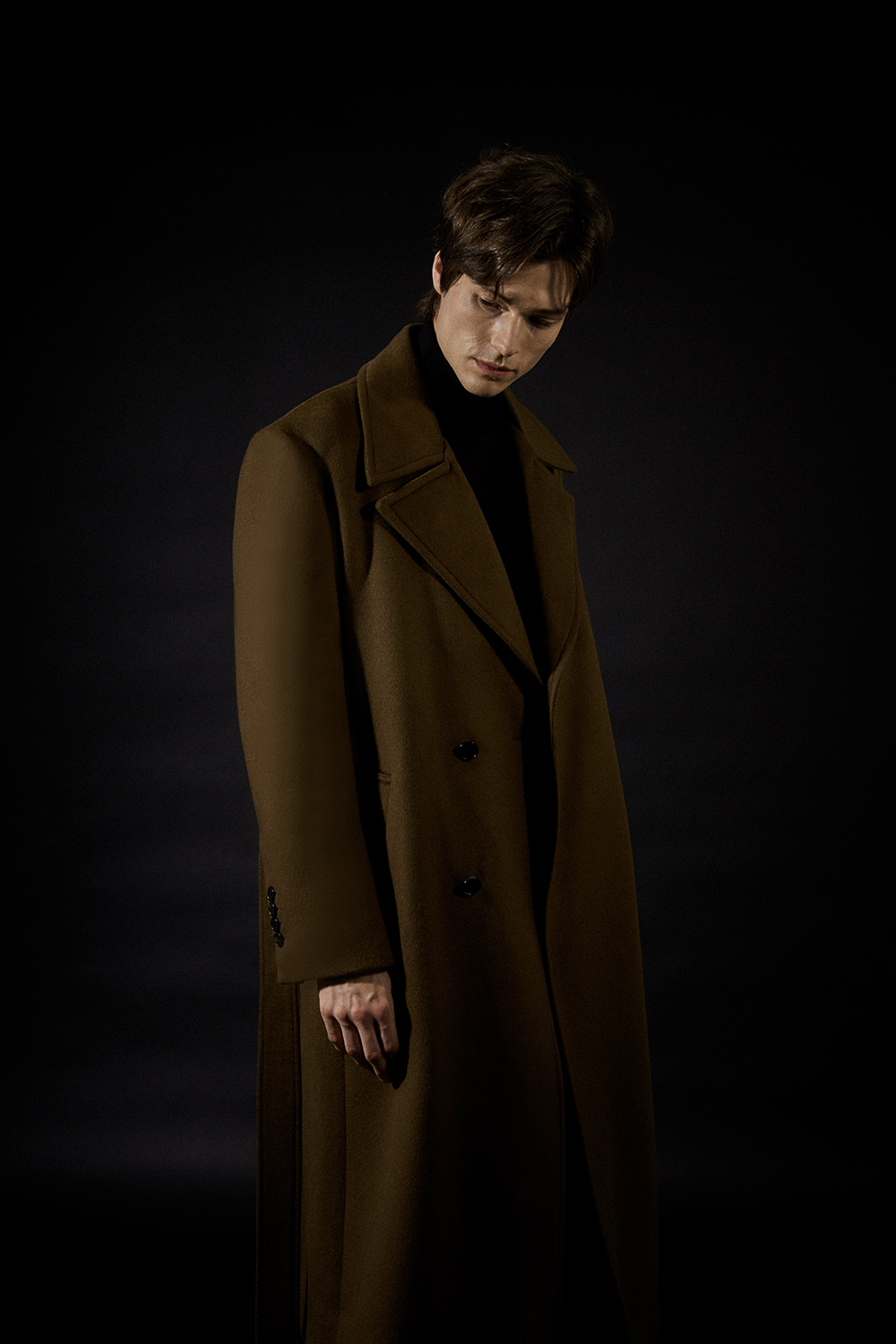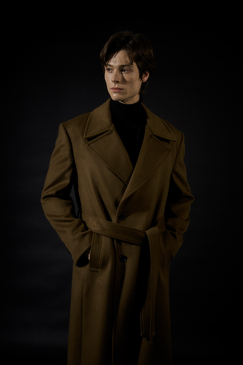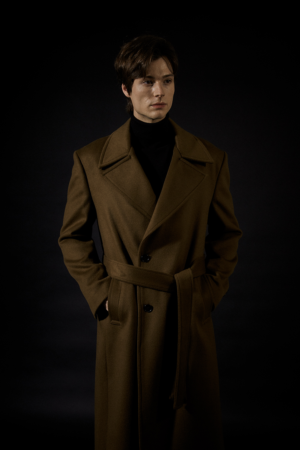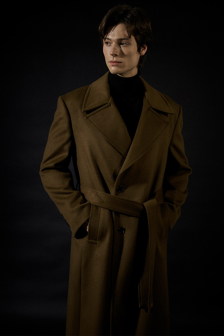 최고급 캐시미어 20% + 울 80% / 색상 OLIVE-KHAKI 올리브-카키 / 소뿔단추 100%