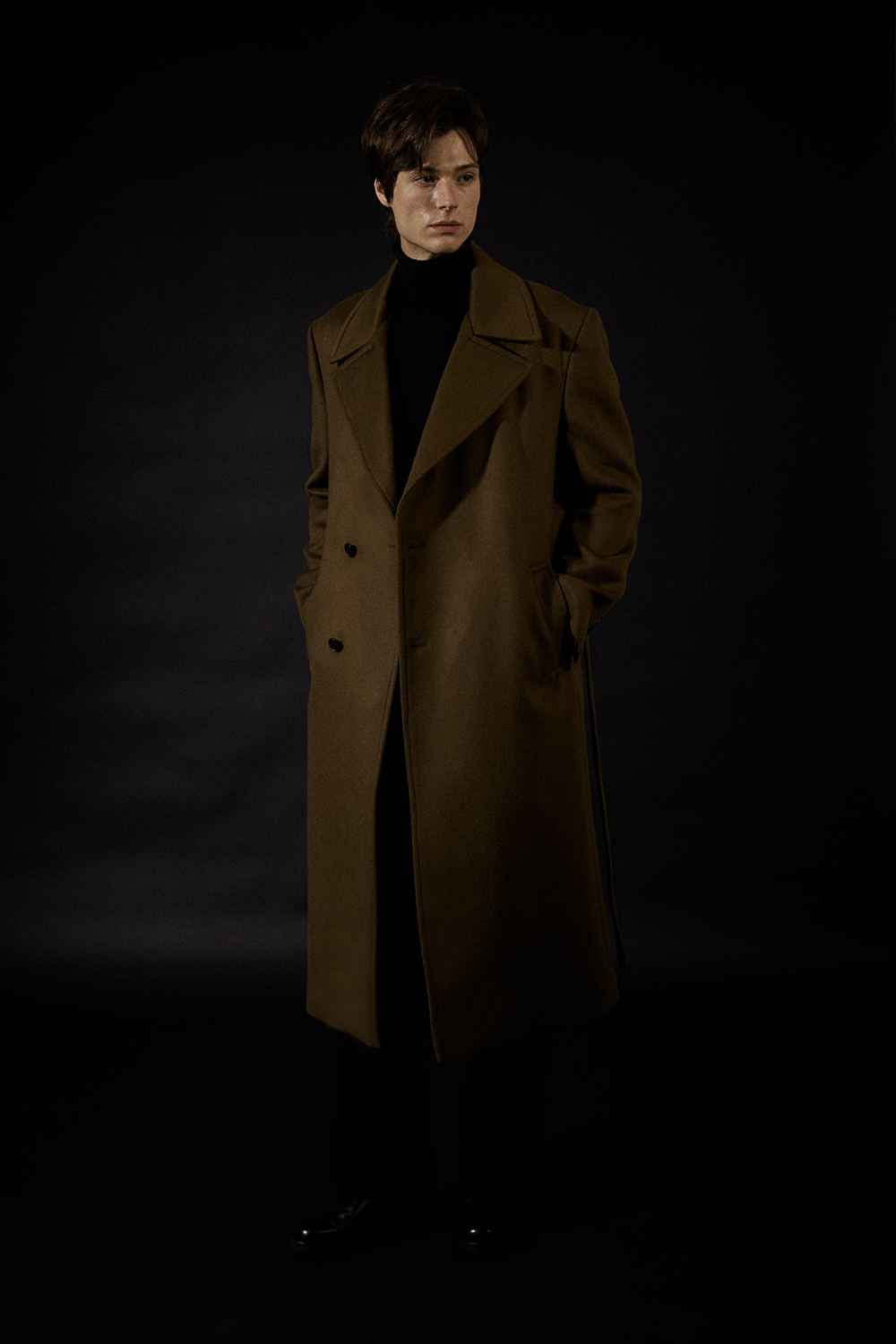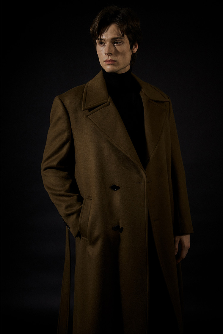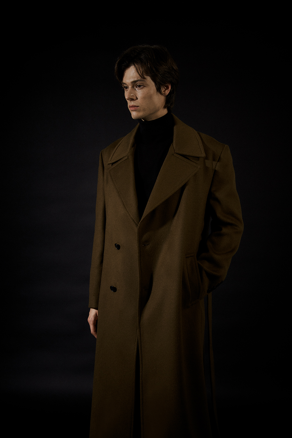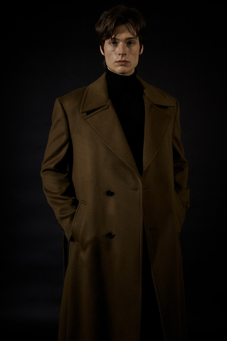 최고급 캐시미어 20% + 울 80% / 색상 OLIVE-KHAKI 올리브-카키 / 소뿔단추 100%
