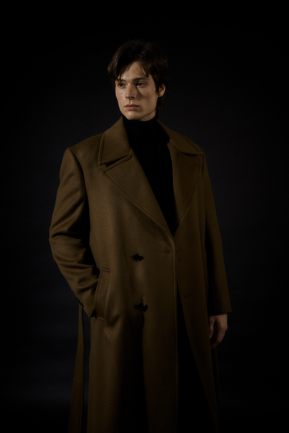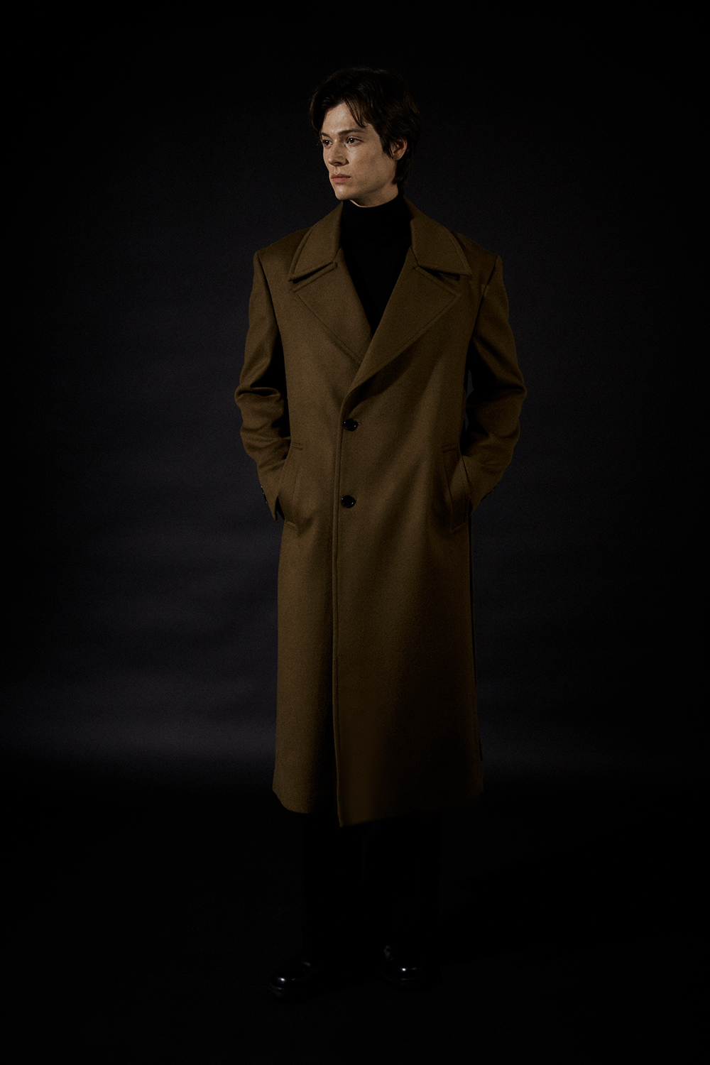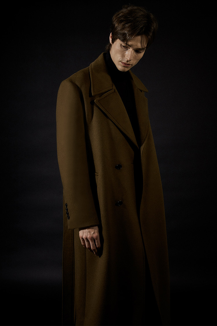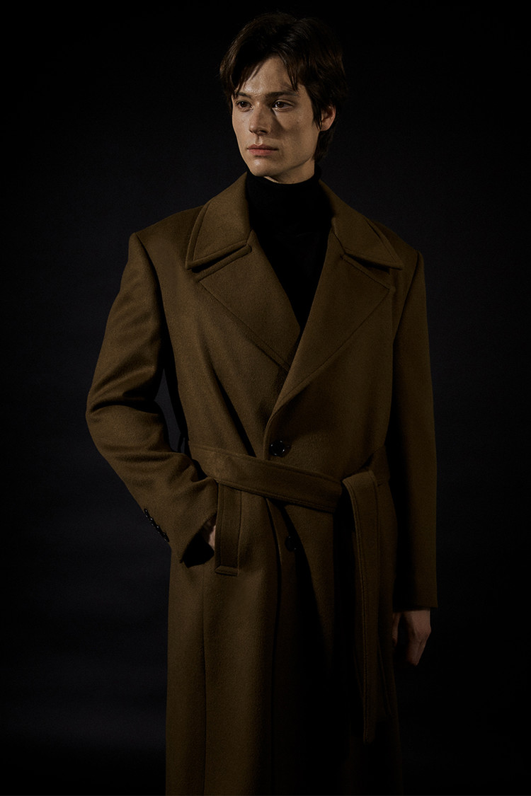 최고급 캐시미어 20% + 울 80% / 색상 OLIVE-KHAKI 올리브-카키 / 소뿔단추 100%