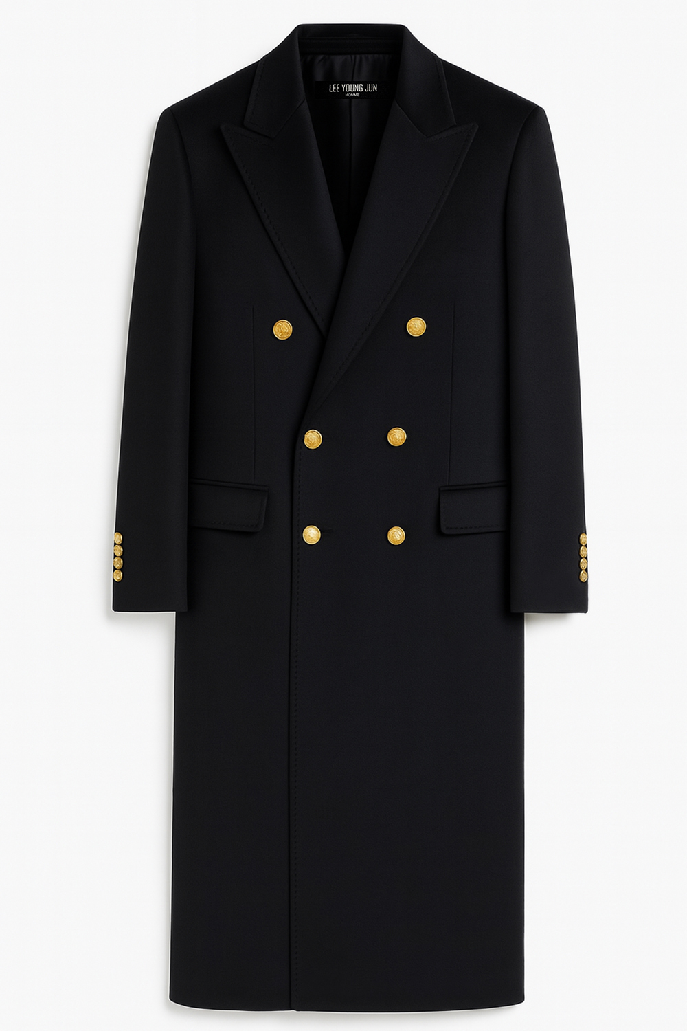 카라 크기와 더블 단추위치를 정교하게 아래쪽으로 잡은 트렌디한 스타일 /