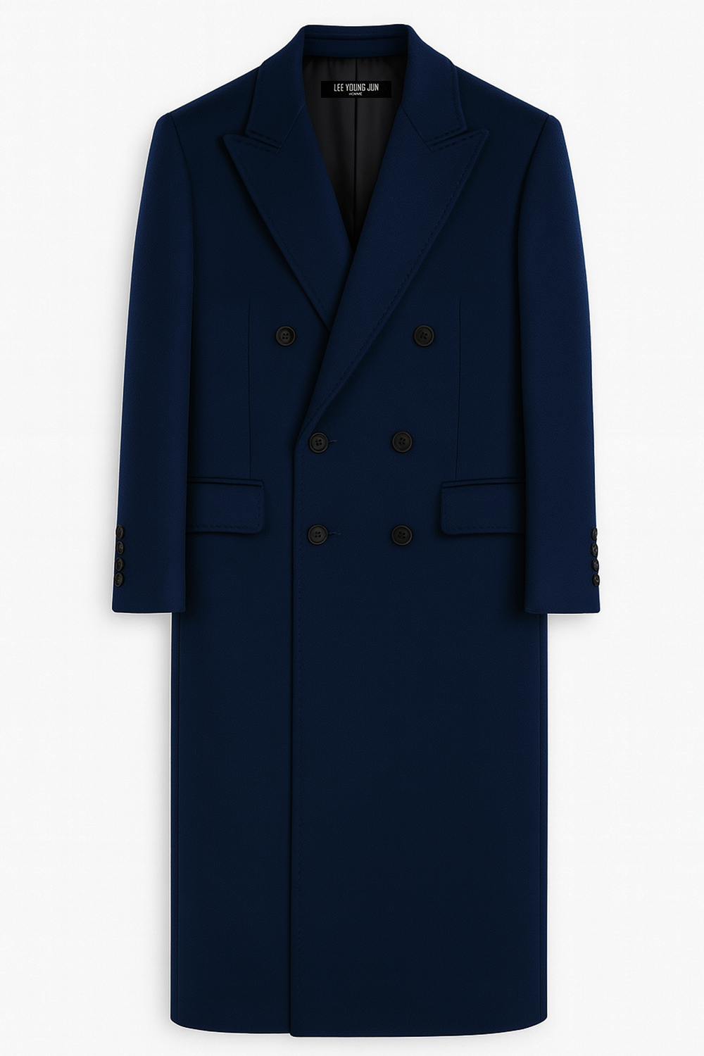 최고급 캐시미어 50% + 울 50% / 색상 DEEP-BLUE 딥-블루 / 소뿔단추 100%
