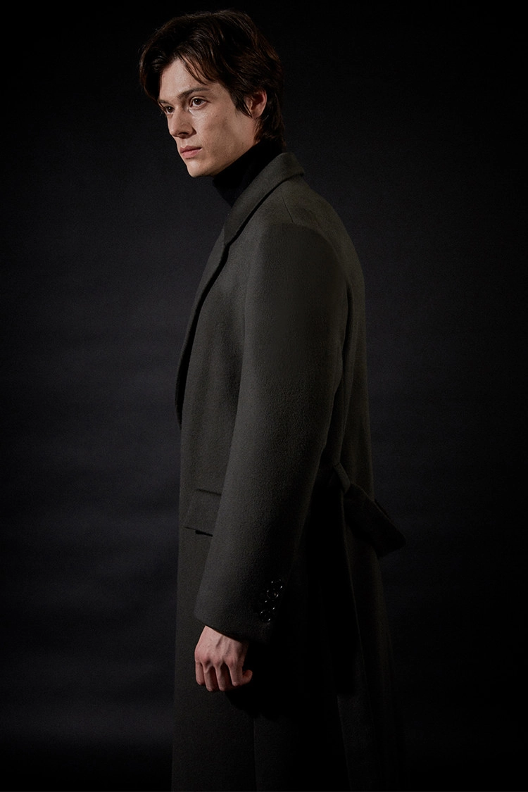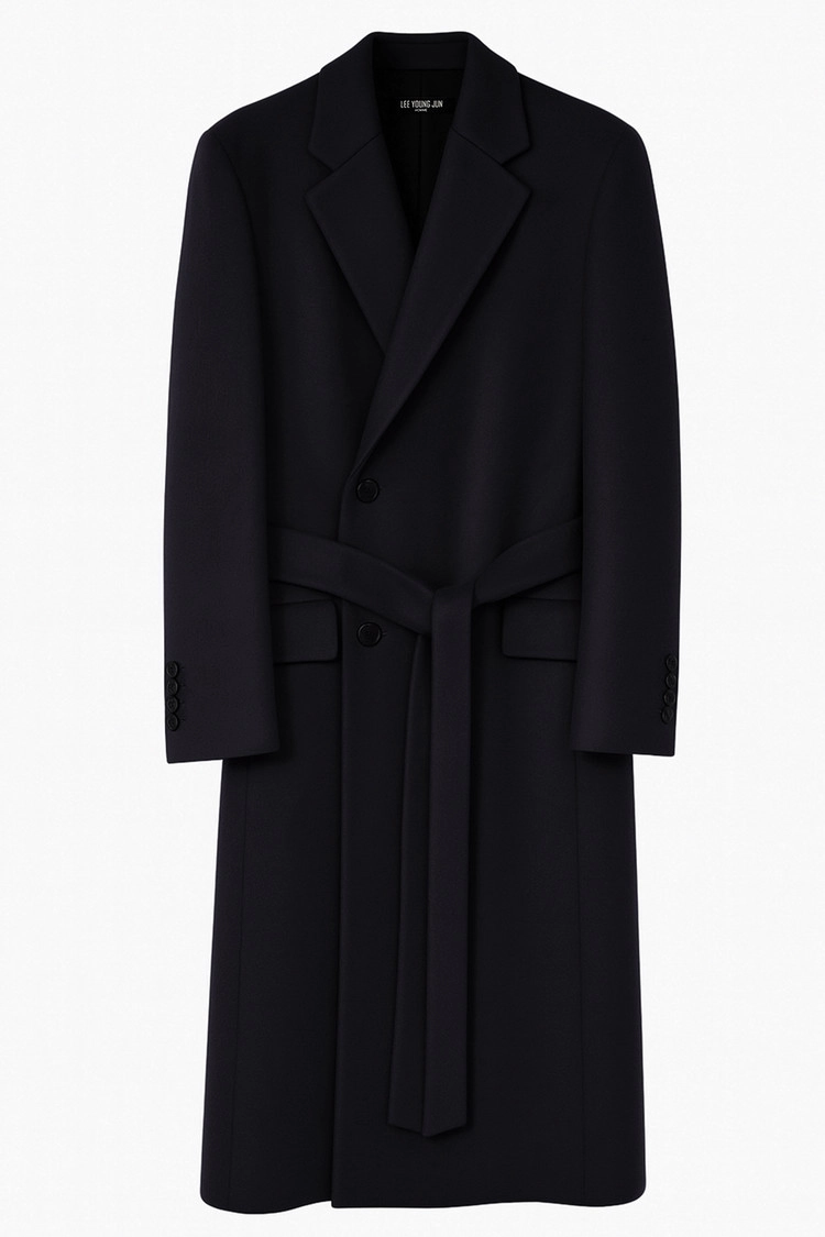 HIGH-END 캐시미어 50% 로브코트 반더블 네이비 벨트 롱코트SALE