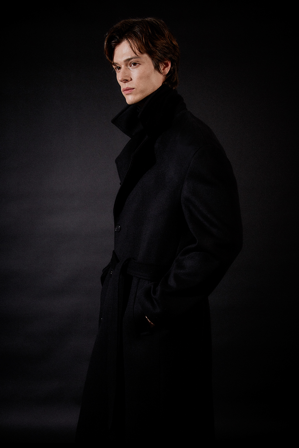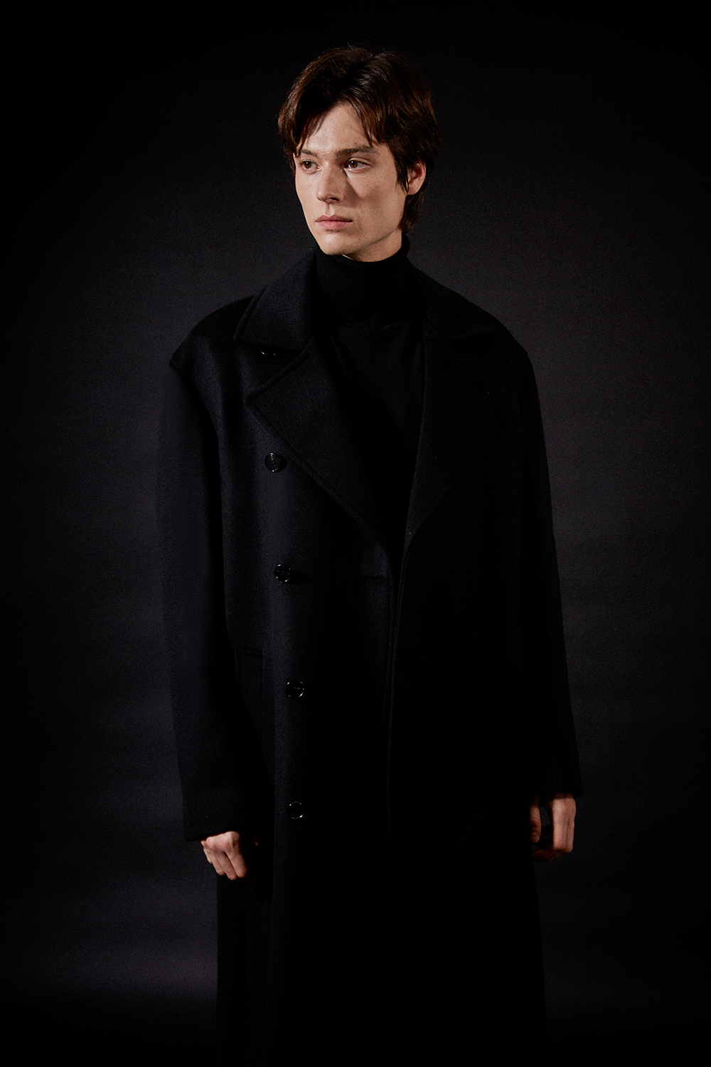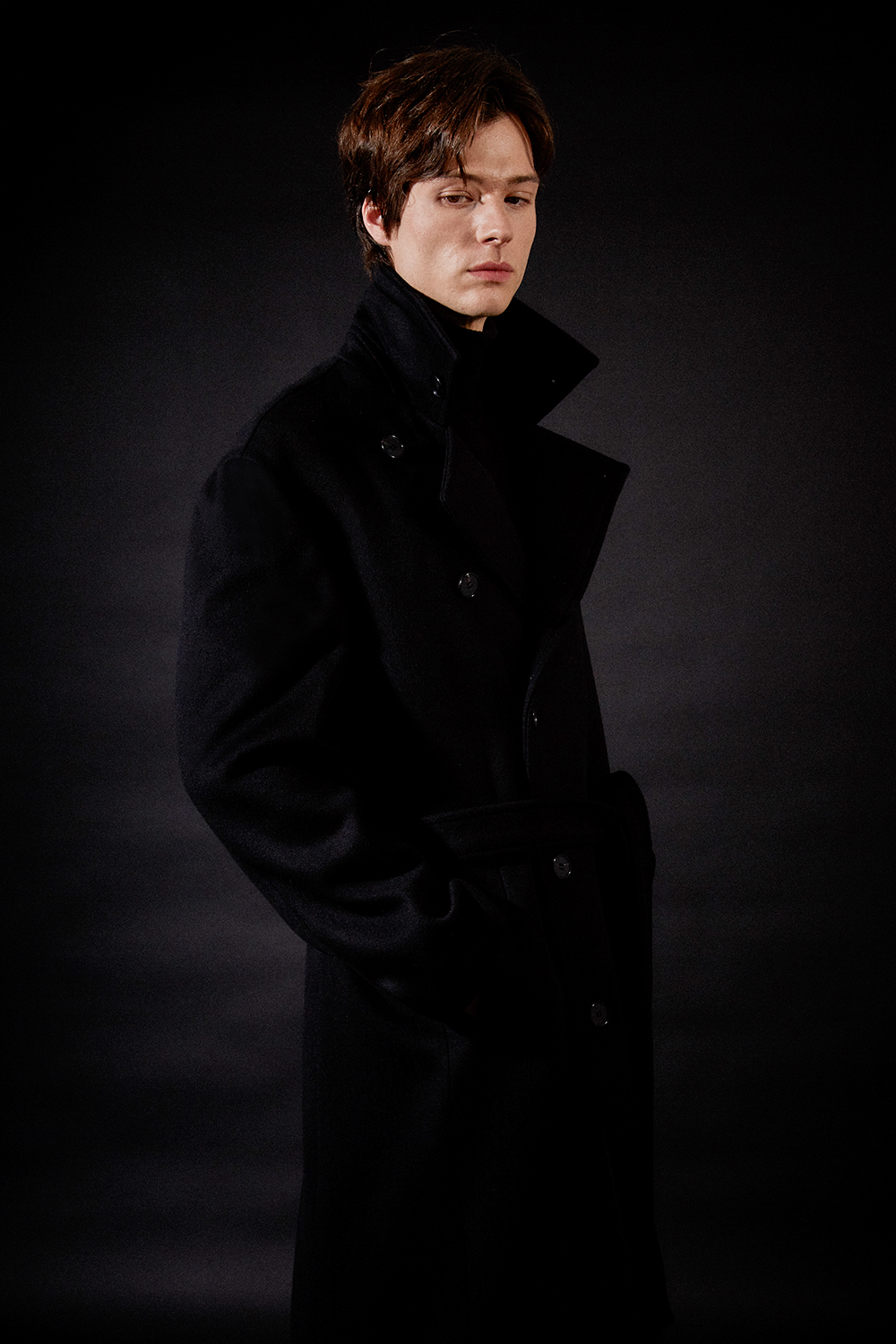 *랩코트 하이넥 디자인으로 카라를 세워서 단추로 잠글수 있는 고급스러운 스타일 /