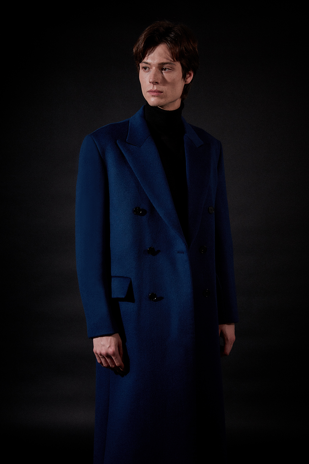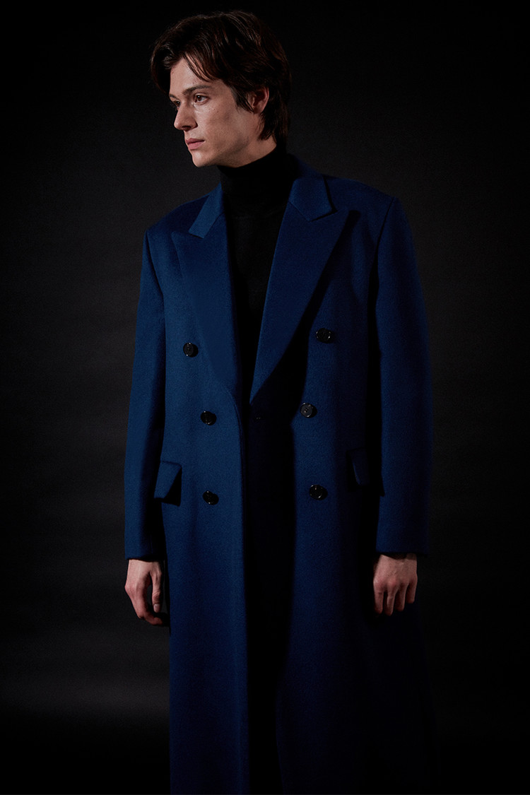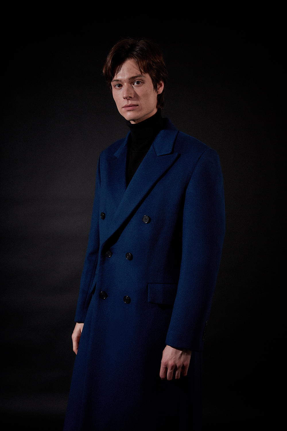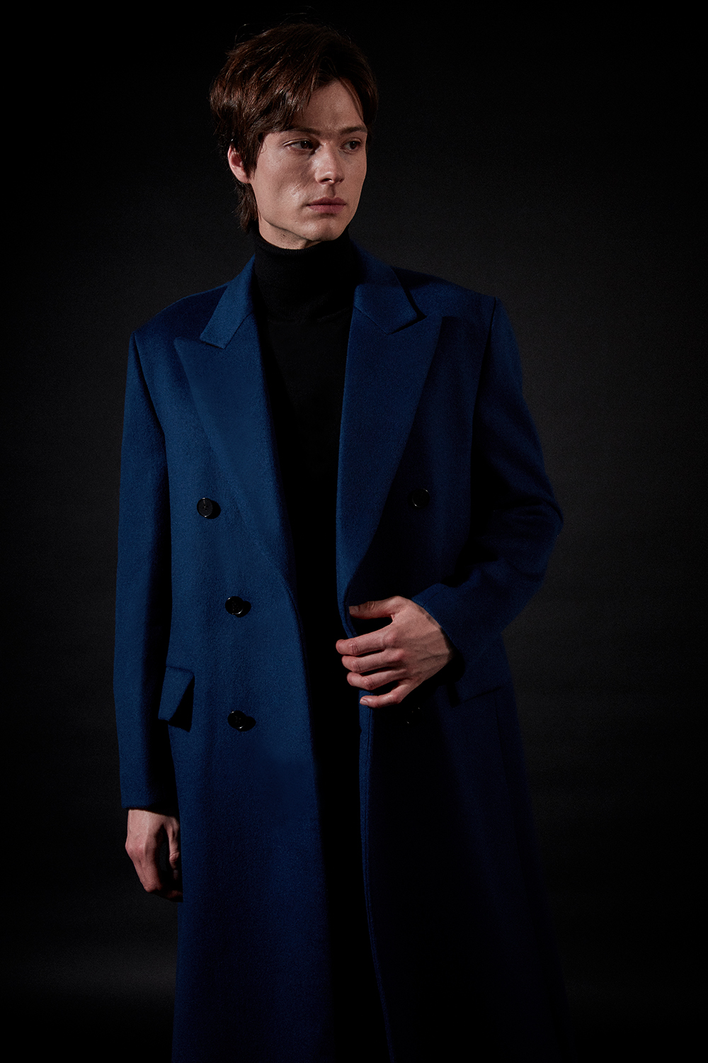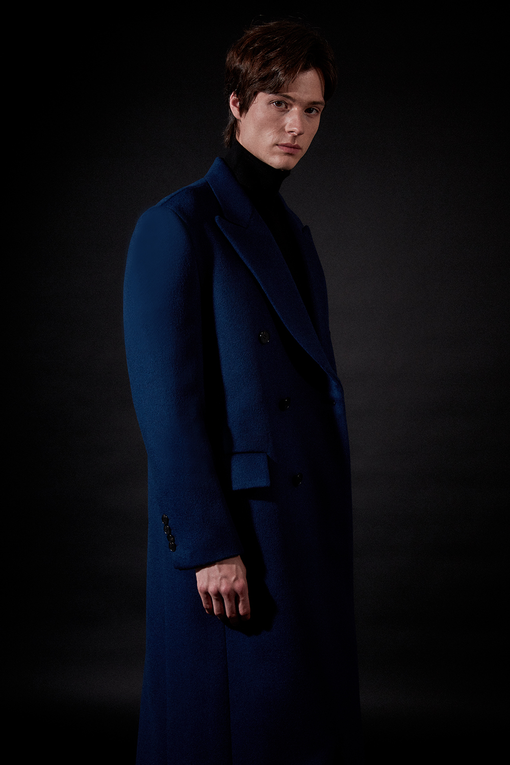 최고급 캐시미어 80% + 울 20% / 색상 DEEP-BLUE 딥-블루 / 소뿔단추 100%