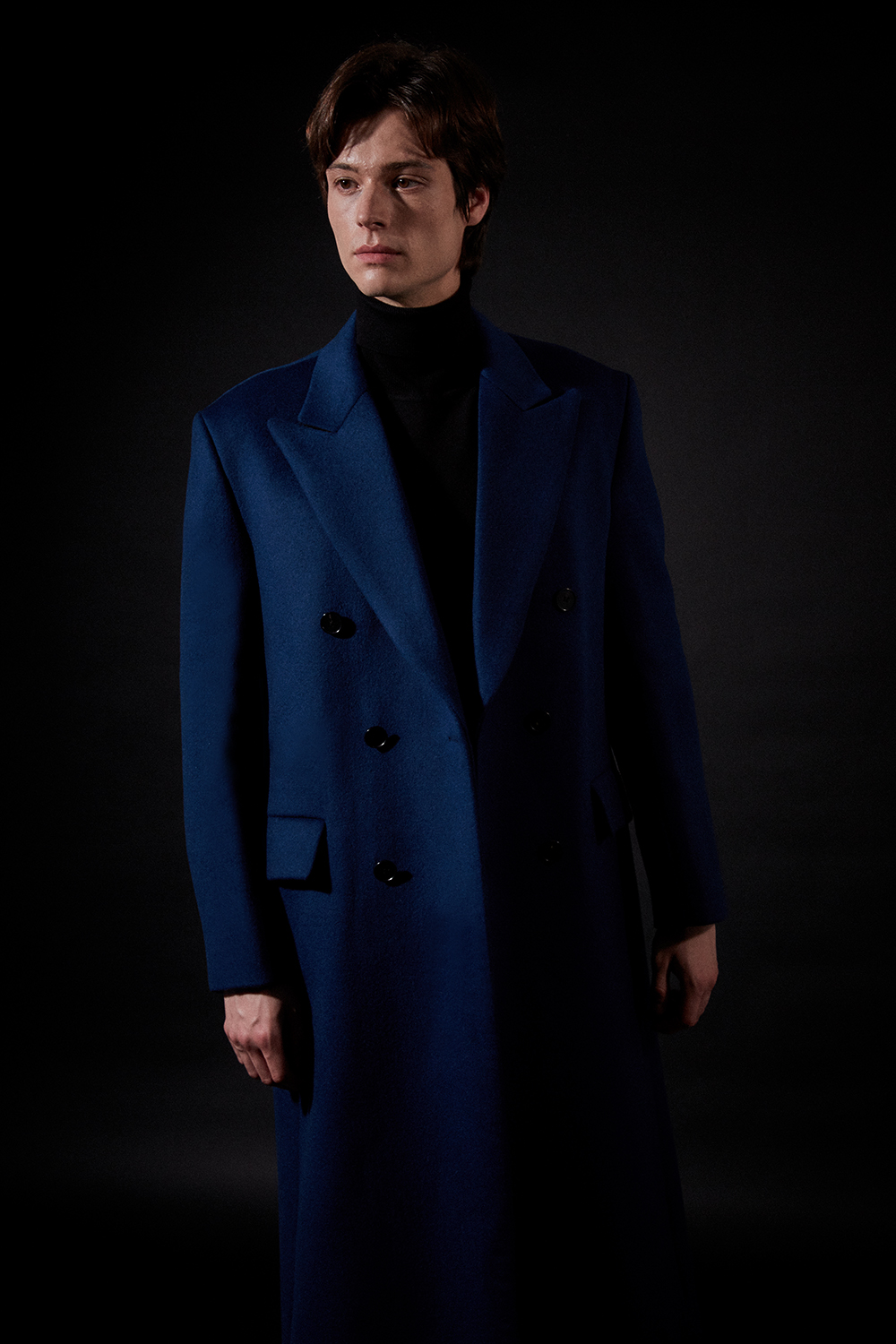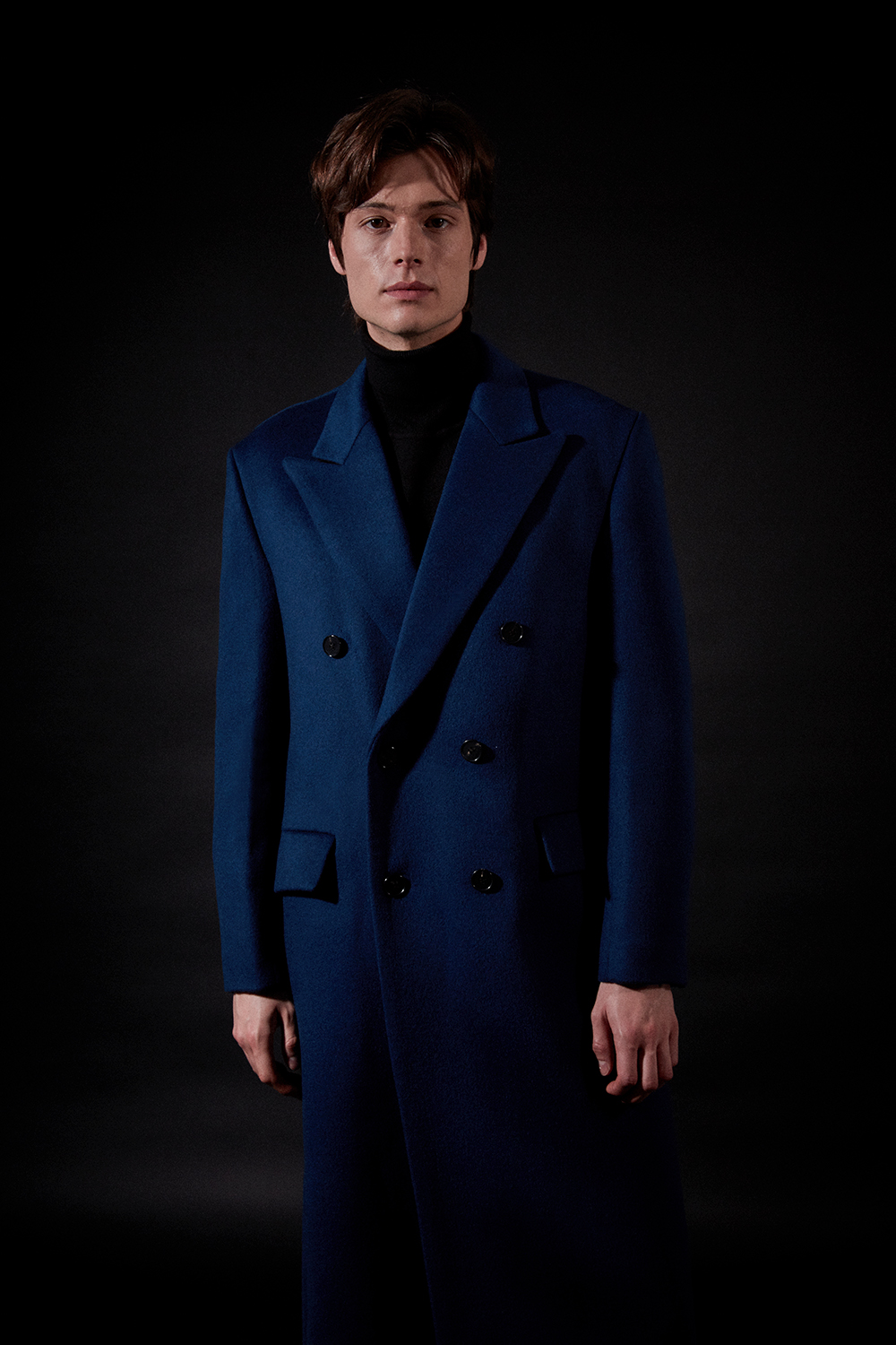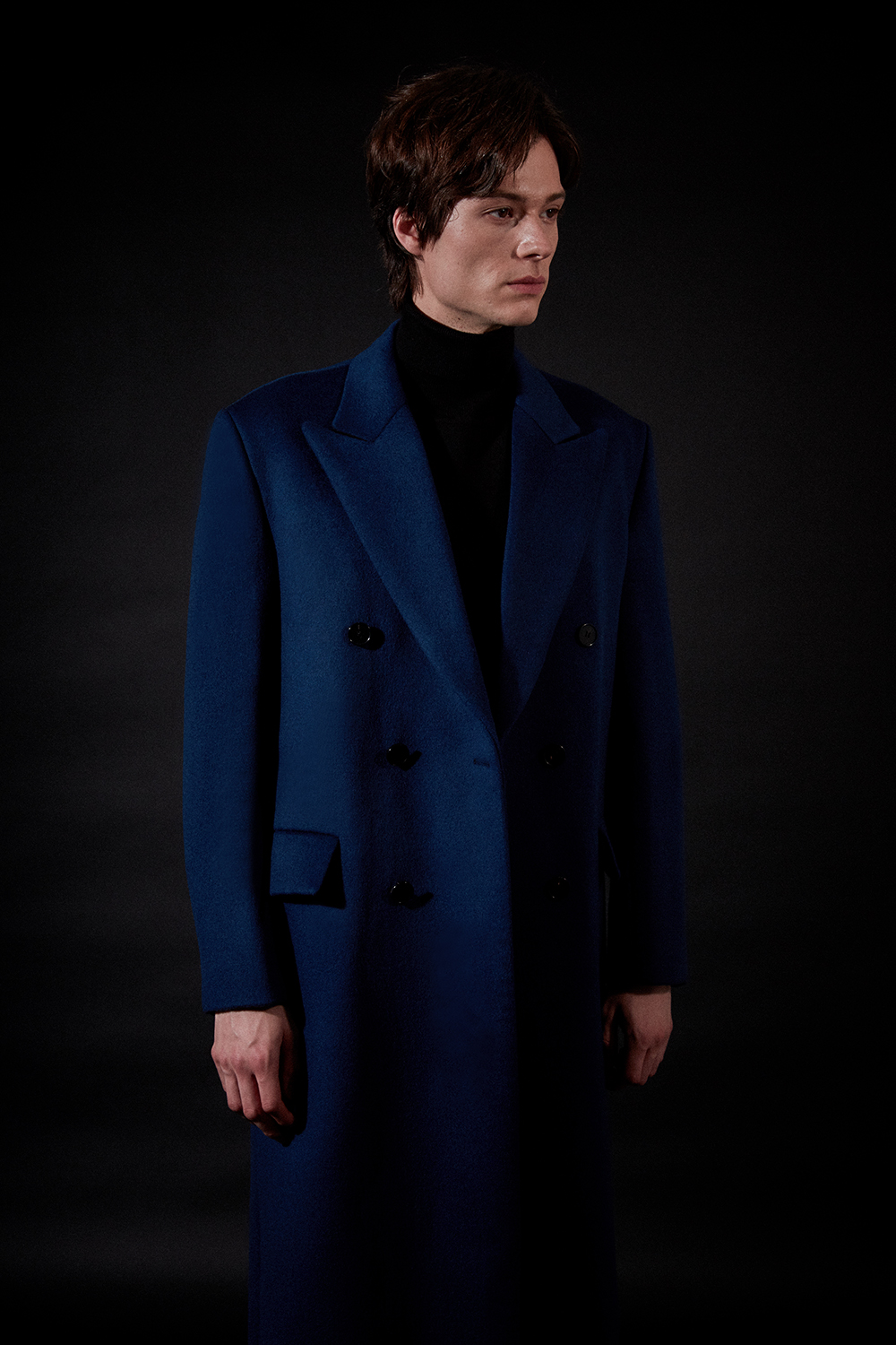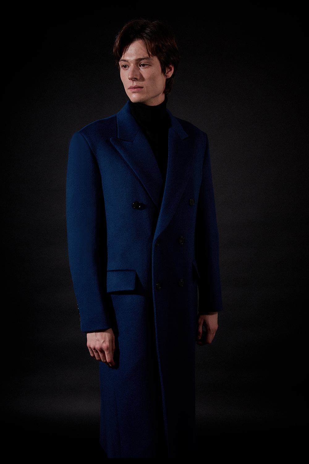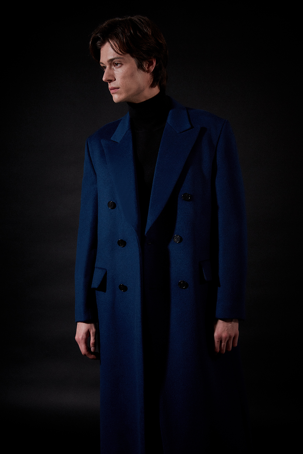 최고급 캐시미어 80% + 울 20% / 색상 DEEP-BLUE 딥-블루 / 소뿔단추 100%