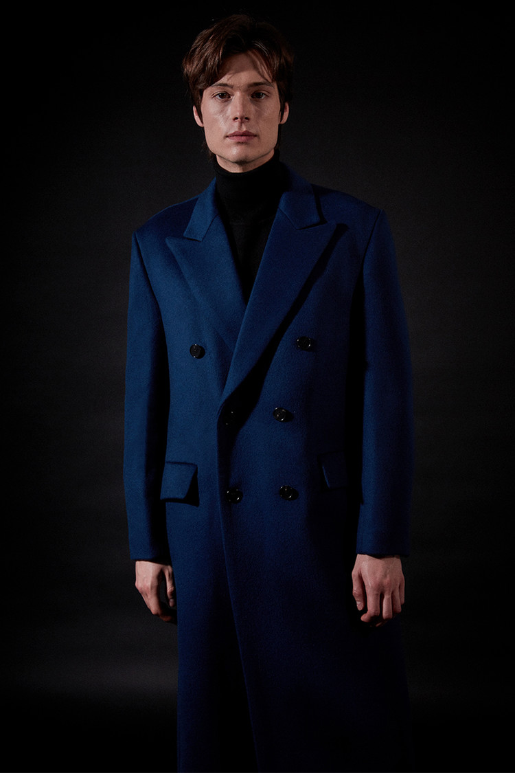 COLOMBO 콜롬보 이태리 캐시미어 100% 피크드카라 딥-블루 더블 슈퍼 롱코트SALE