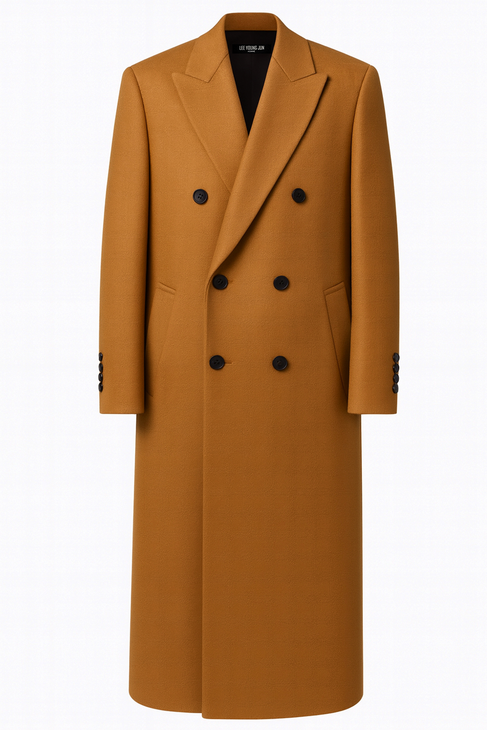 최고급 캐시미어 80% + 울 20% / 색상 ORANGE-CAMEL 오렌지-카멜 / 소뿔단추 100%
