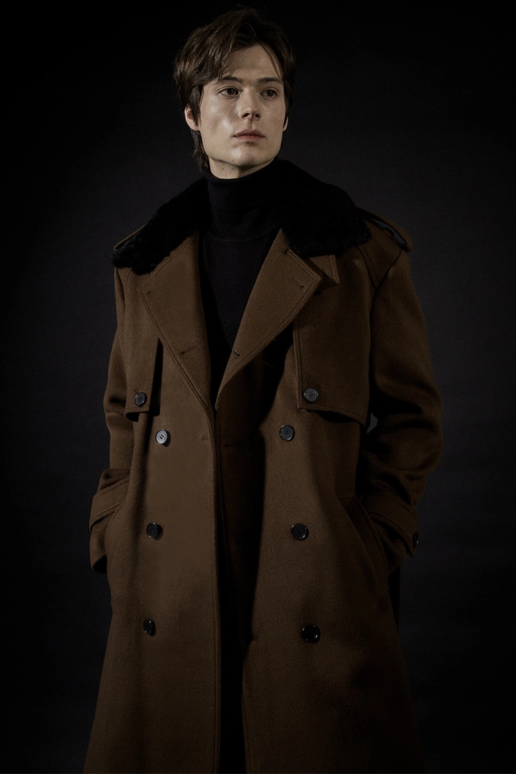 LUXURY 캐시미어 100% 딥-브라운 무스탕 퍼카라 탈부착 트렌치코트 롱코트SALE