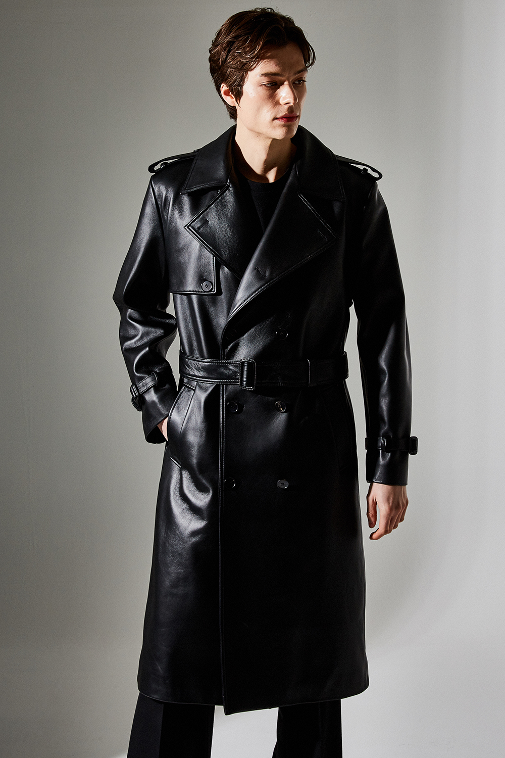 스타일을 돋보이게 해주는 최고급 양가죽 트렌치 가죽코트 입니다.