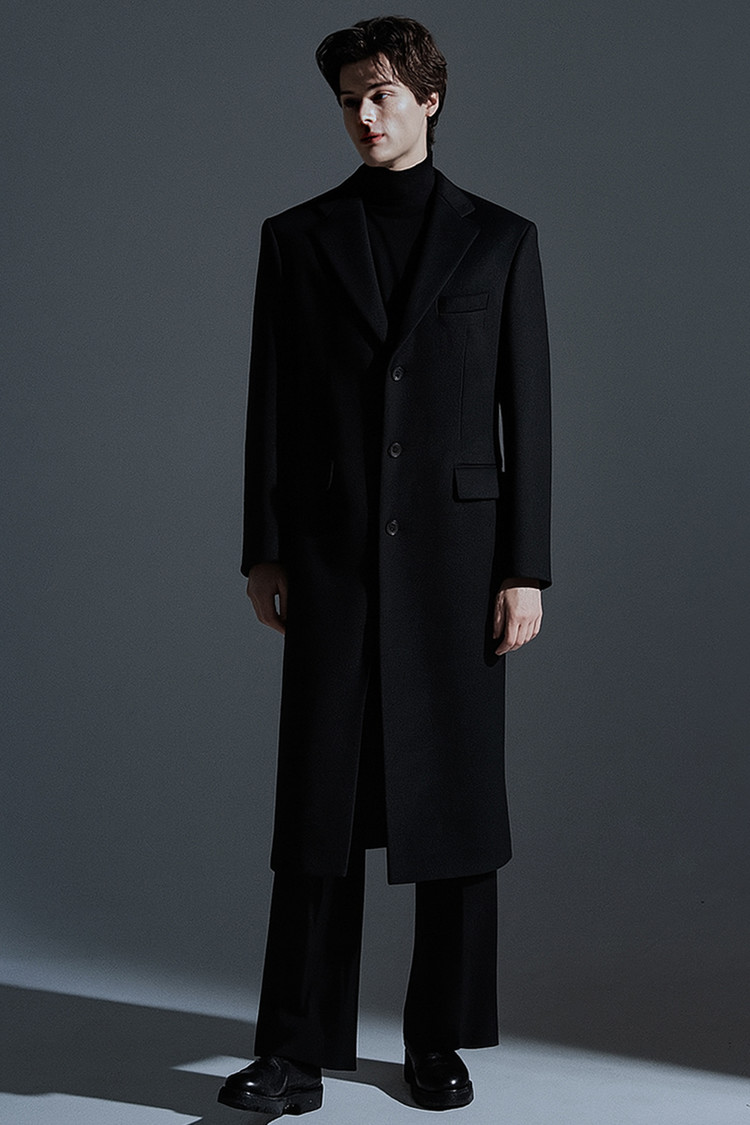 *클래식한 노치드 라펠의 3버튼 디자인 / 블랙의 고급스러운 원단