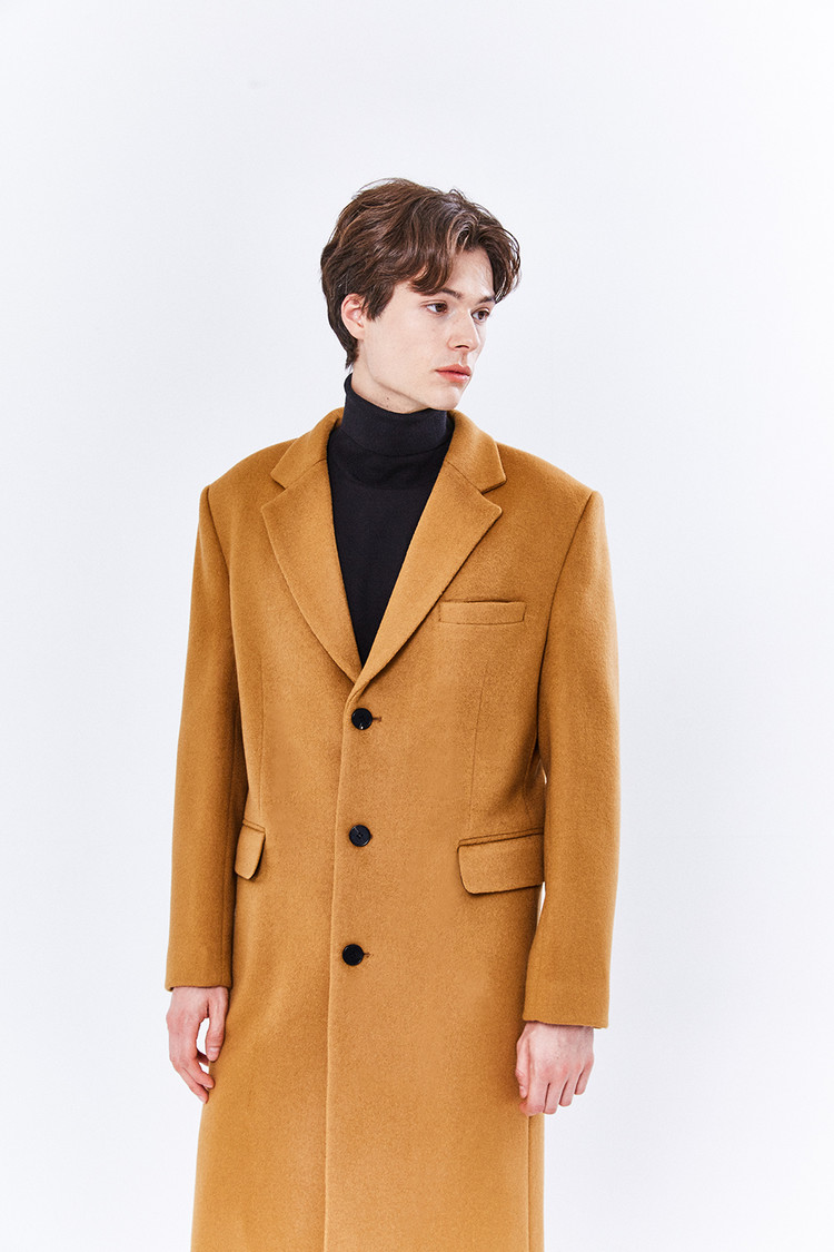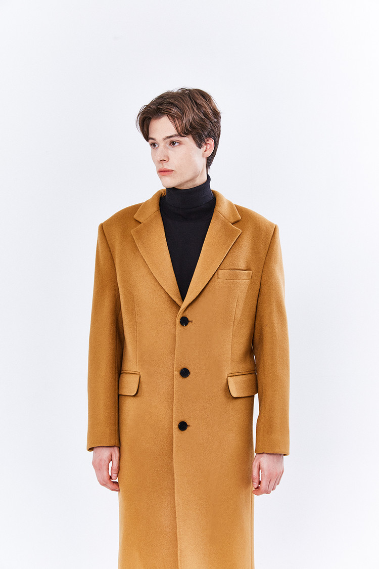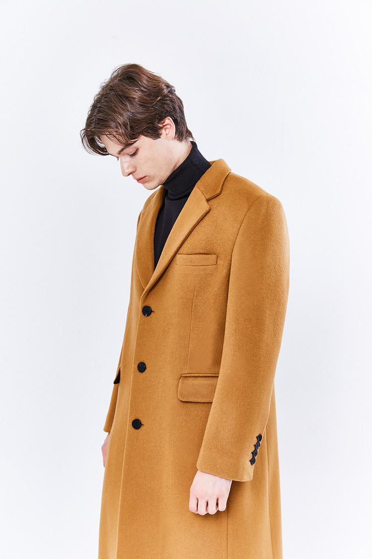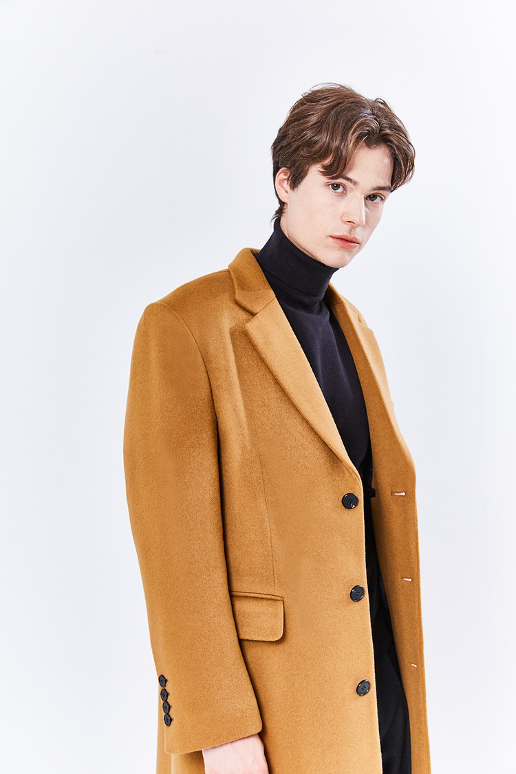 *클래식한 노치드 라펠의 3버튼 디자인 / 카멜의 고급스러운 원단