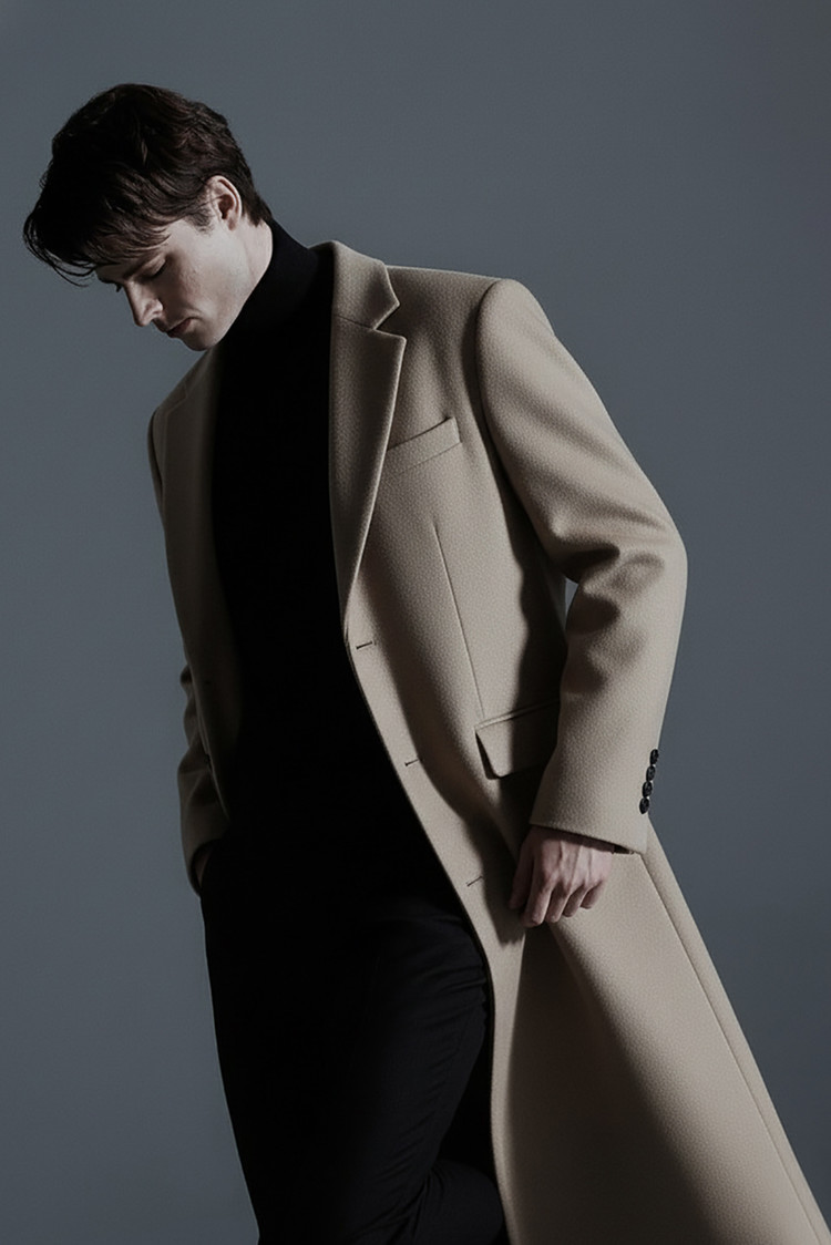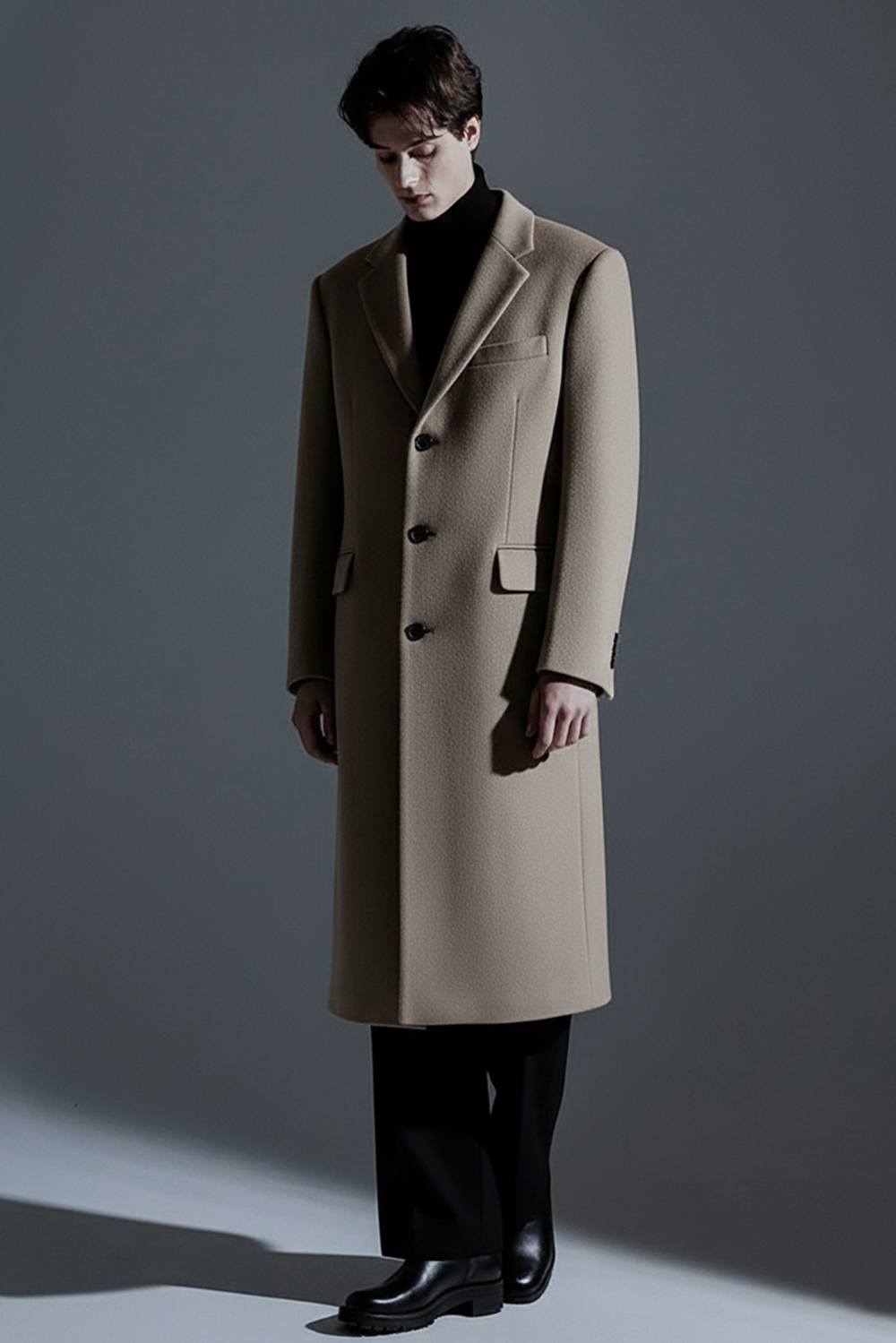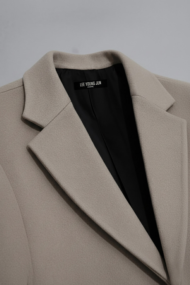최고급 캐시미어 80% + 울 20% / 색상 COW HAIR-BEIGE 소털-베이지 / 소뿔단추 100%