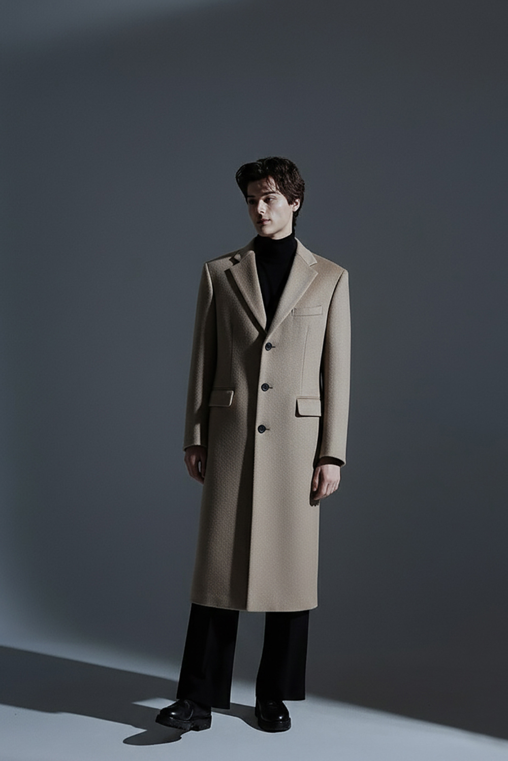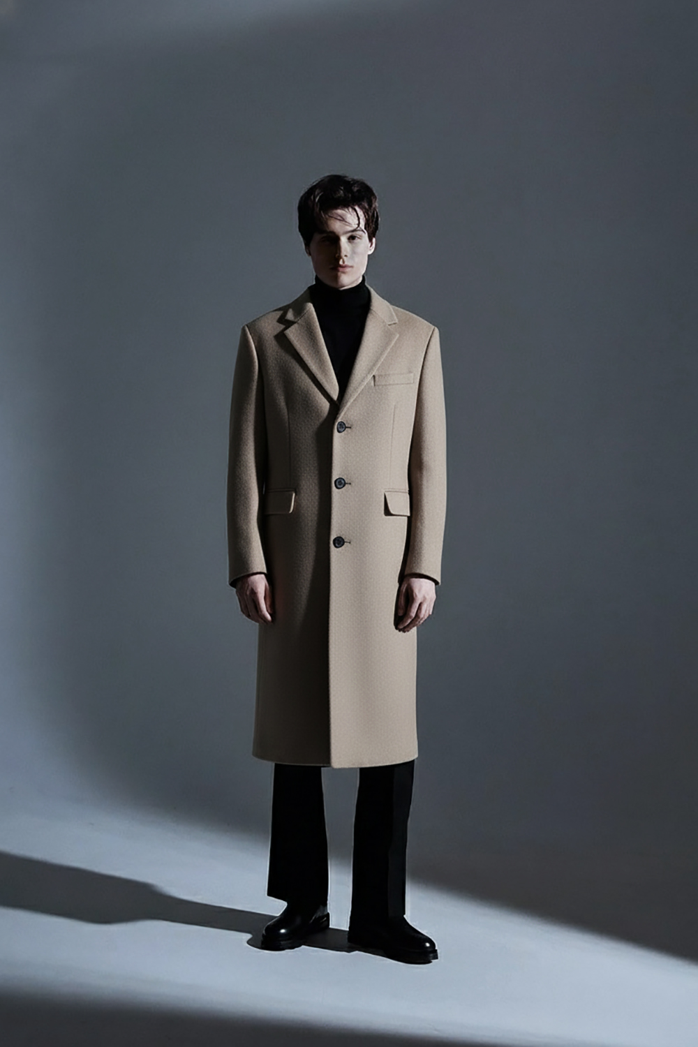 *클래식한 노치드 라펠의 3버튼 디자인 / 블랙의 고급스러운 원단