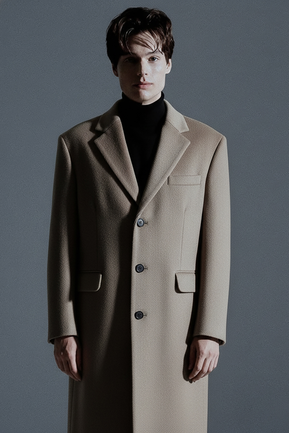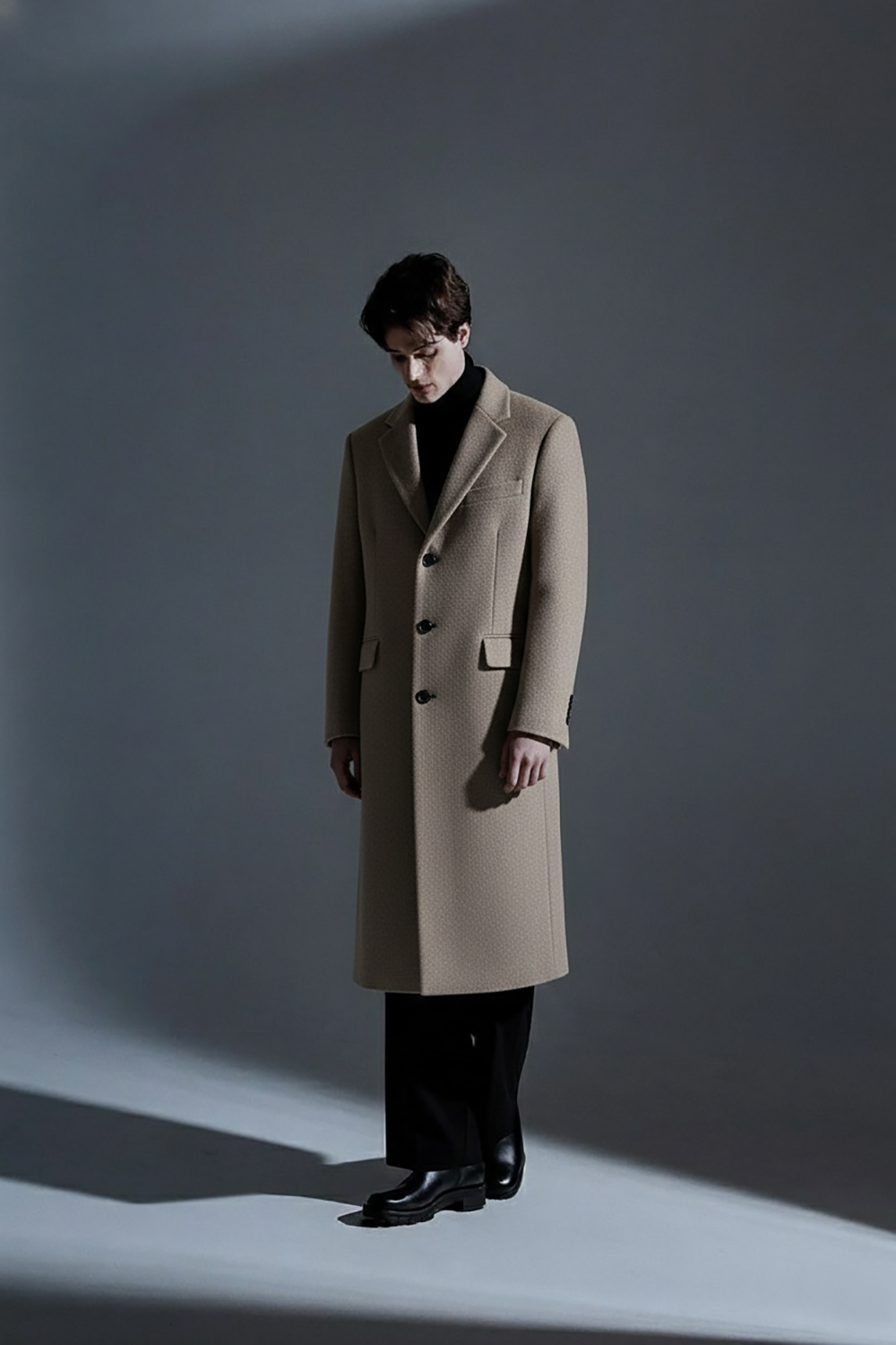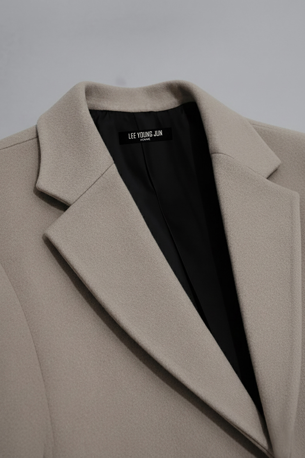 최고급 캐시미어 50% + 울 50% / 색상 COW HAIR-BEIGE 소털-베이지 / 소뿔단추 100%
