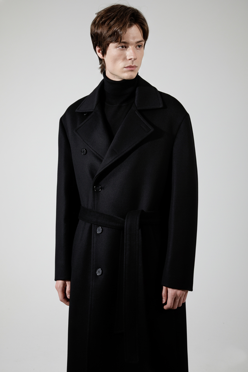 *랩코트 하이넥 디자인으로 카라를 세워서 단추로 잠글수 있는 고급스러운 스타일 /