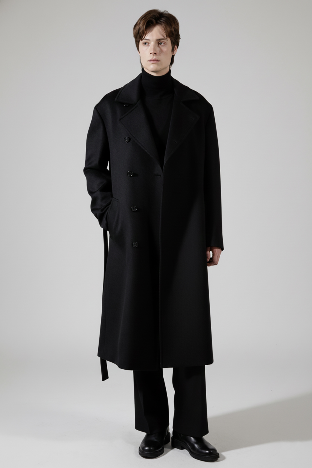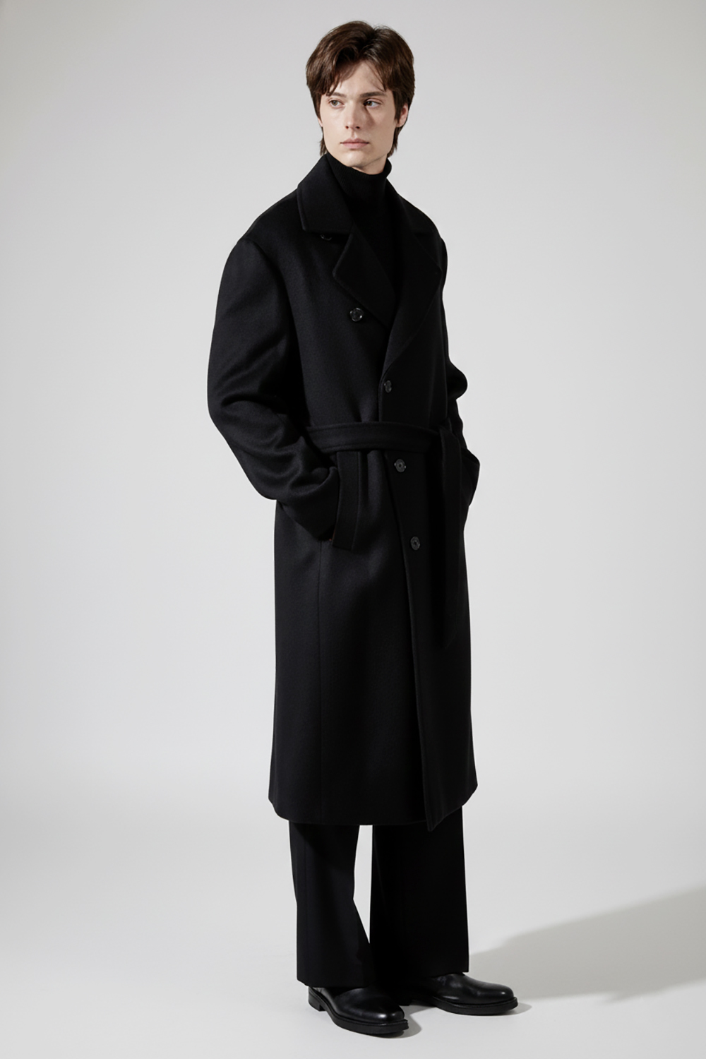 최고급 캐시미어 80% + 울 20% / 색상 BLACK 블랙 / 소뿔단추 100%