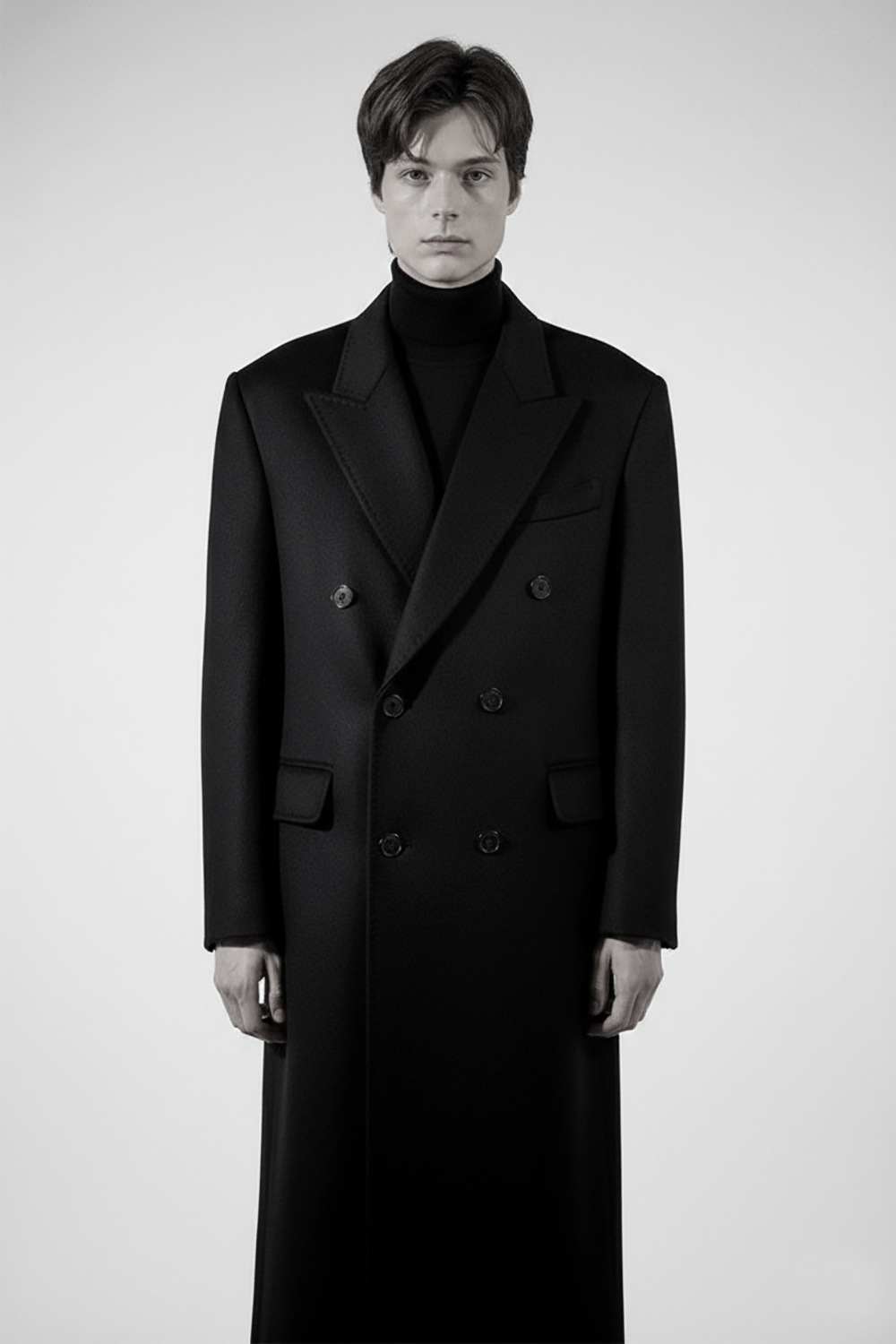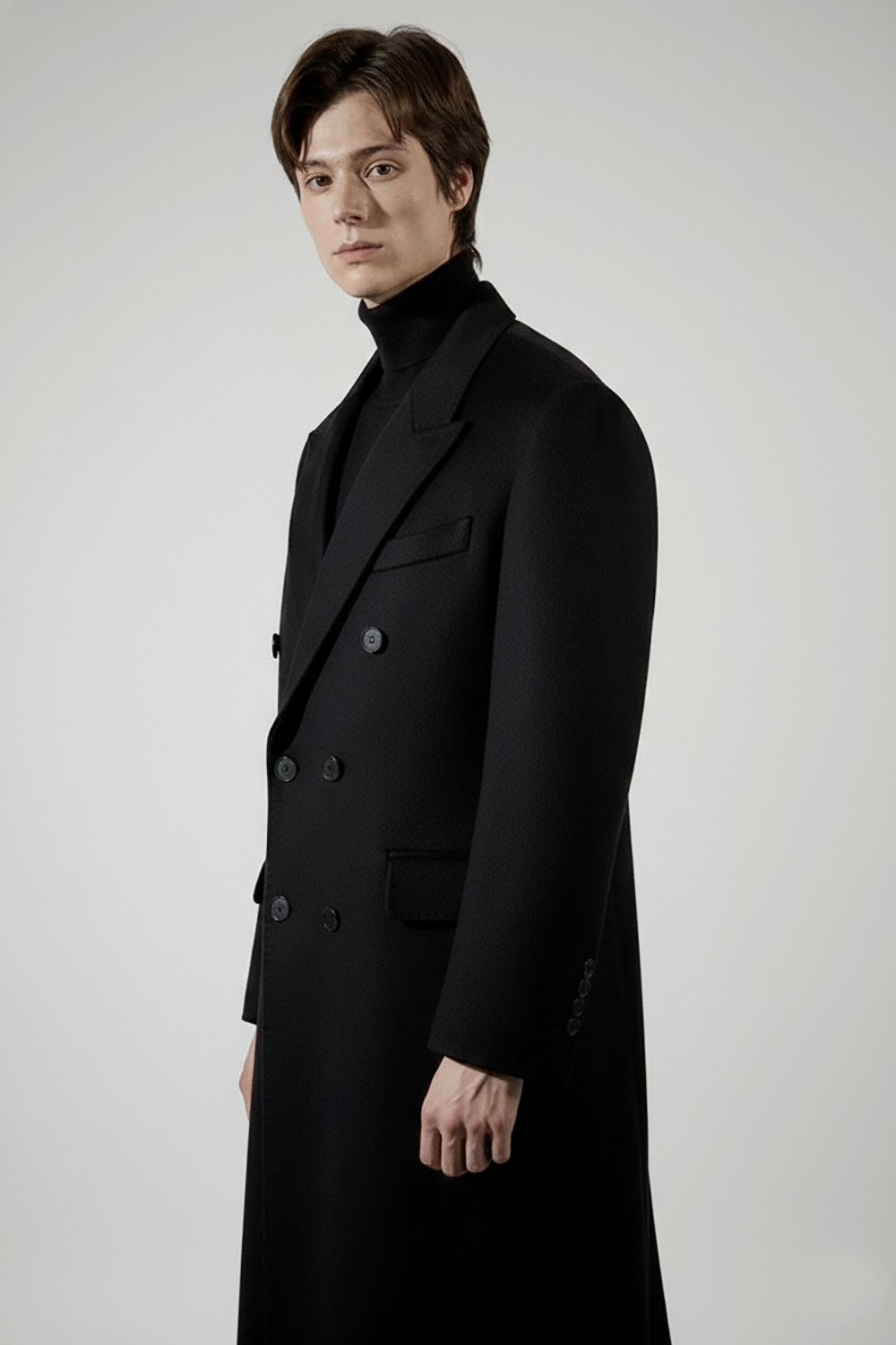 카라 크기와 더블 단추위치를 정교하게 아래쪽으로 잡은 트렌디한 스타일 /