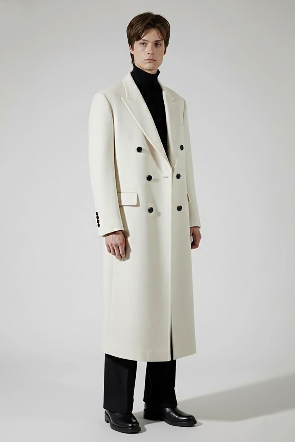 카라 크기와 더블 단추위치를 정교하게 아래쪽으로 잡은 트렌디한 스타일 /
