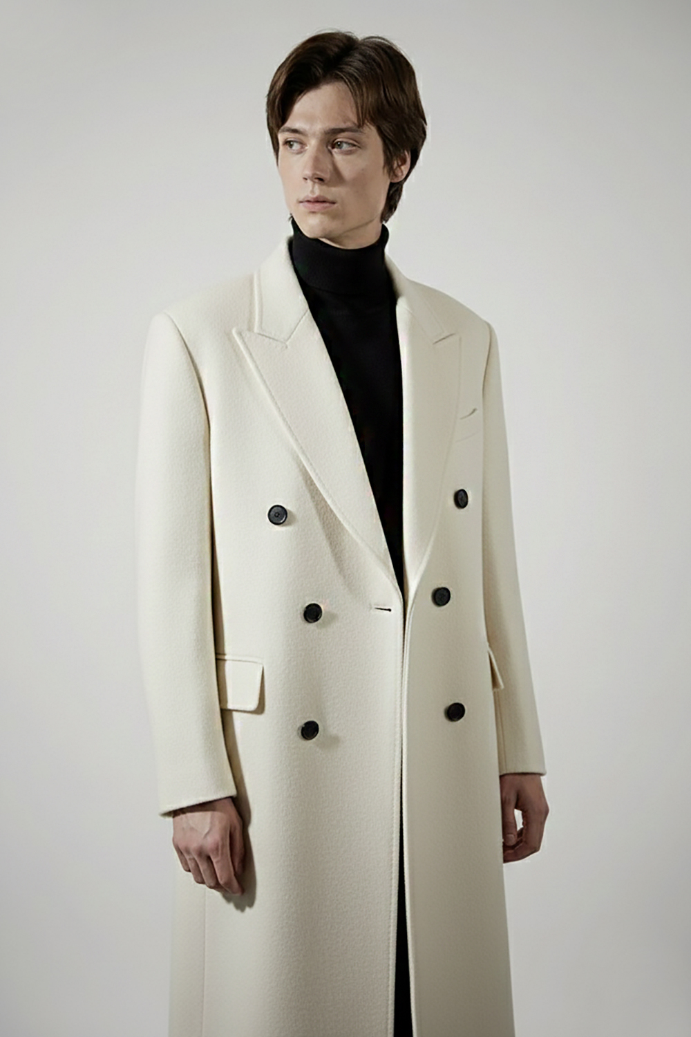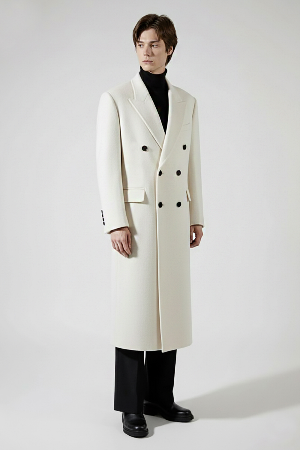 최고급 캐시미어 20% + 울 20% / 색상 DEEP-IVORY 딥-아이보리 / 소뿔단추 100%