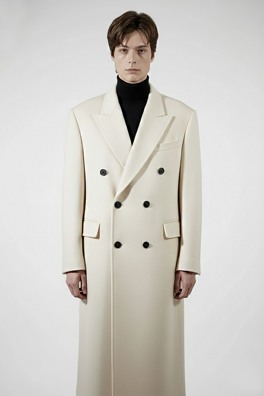 최고급 캐시미어 80% + 울 20% / 색상 DEEP-IVORY 딥-아이보리 / 소뿔단추 100%