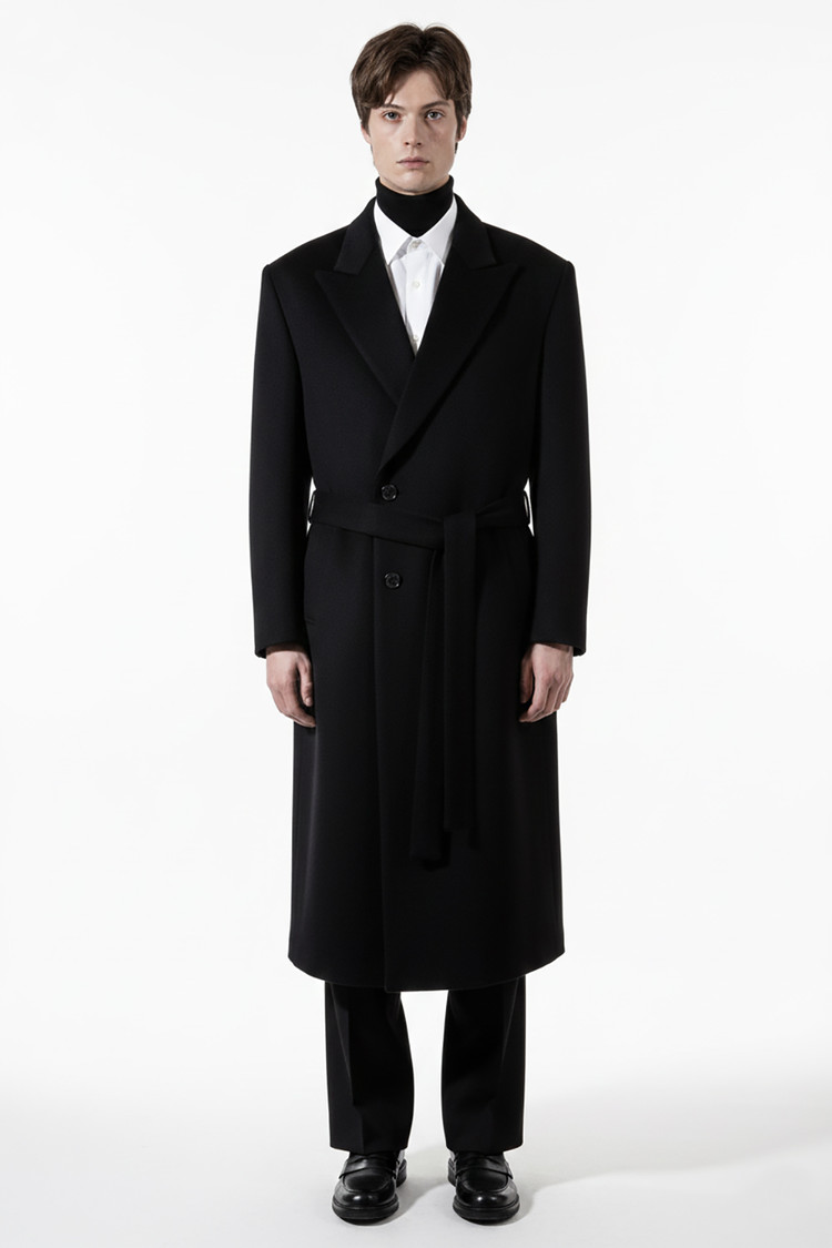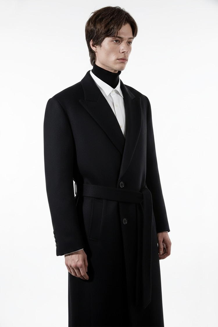 BRESCHI 브레스키 이태리 캐시미어 100% 반더블 로브코트 블랙 벨트 롱코트SALE