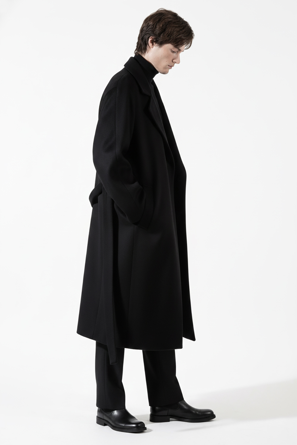 캐시미어 20% 로브코트 벨트 나그랑 블랙 롱코트SALE
