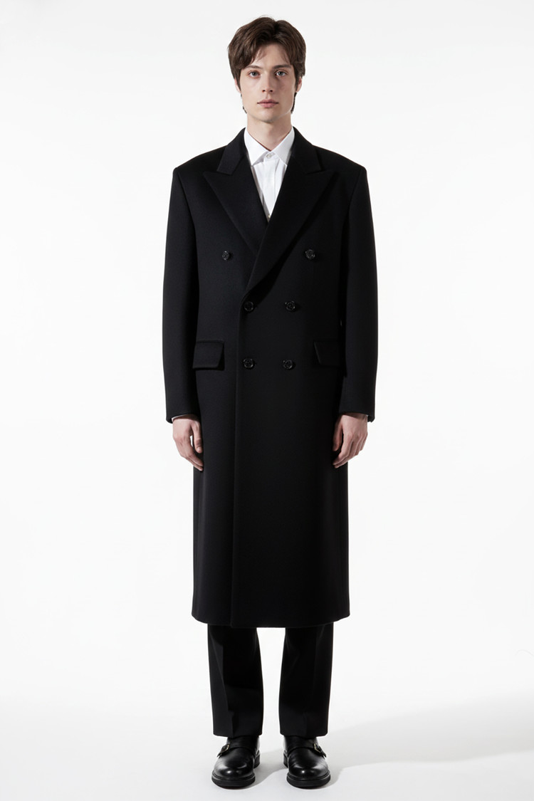 최고급 캐시미어 50% + 울 50% / 색상 BLACK 블랙 / 소뿔단추 100%