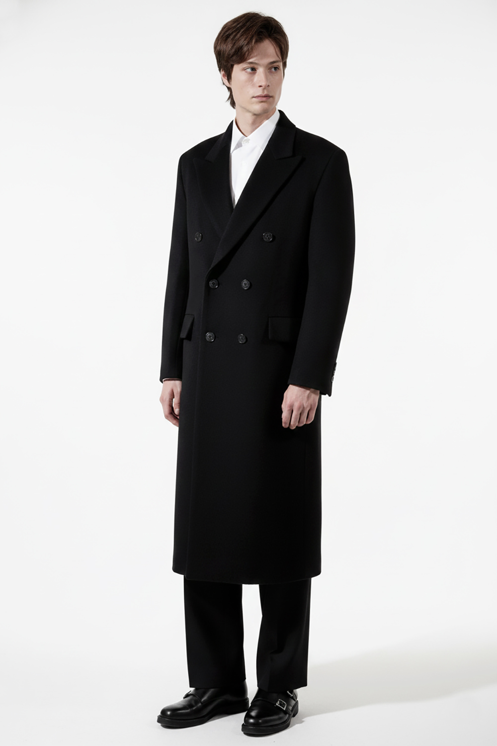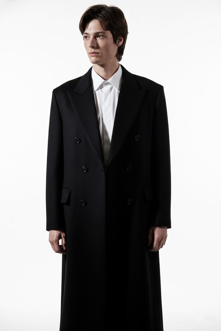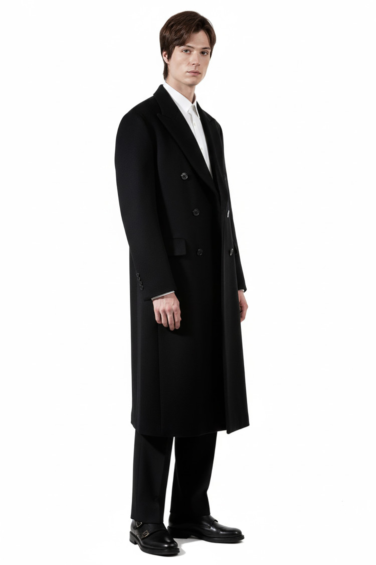 캐시미어 20% 피크드카라 블랙 더블 슈퍼 롱코트SALE