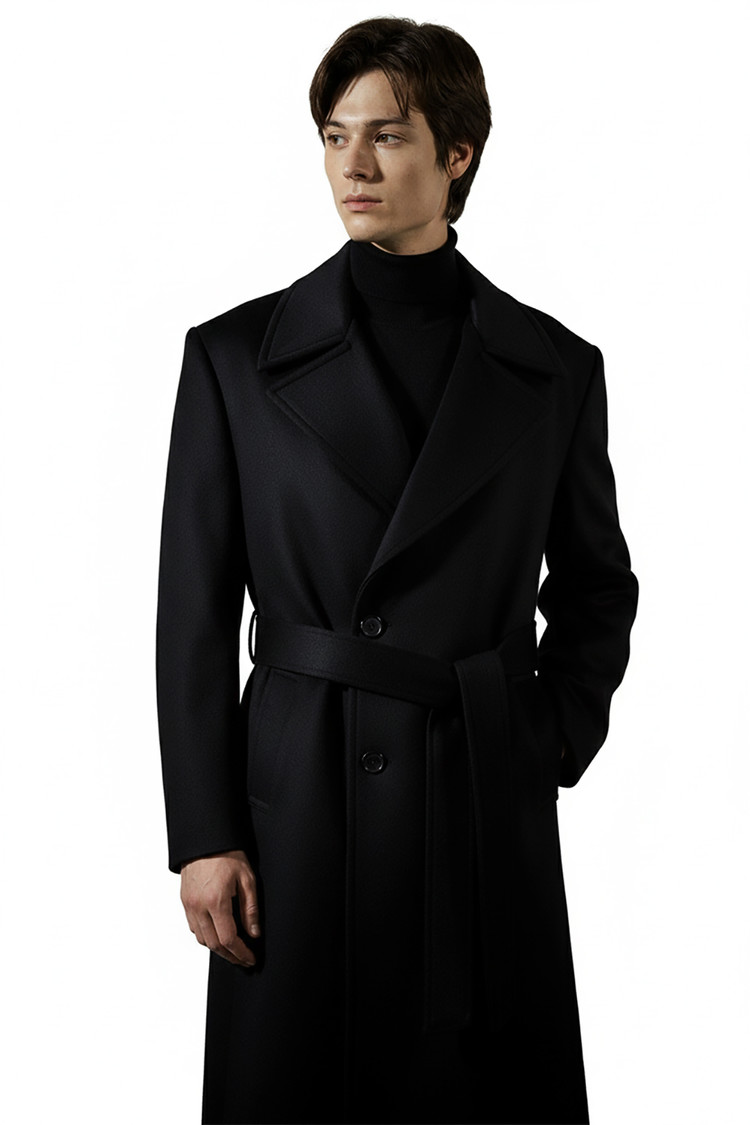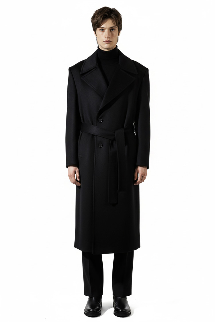 HIGH-END 캐시미어 80% 반더블 로브코트 블랙 벨트 슈퍼 롱코트SALE