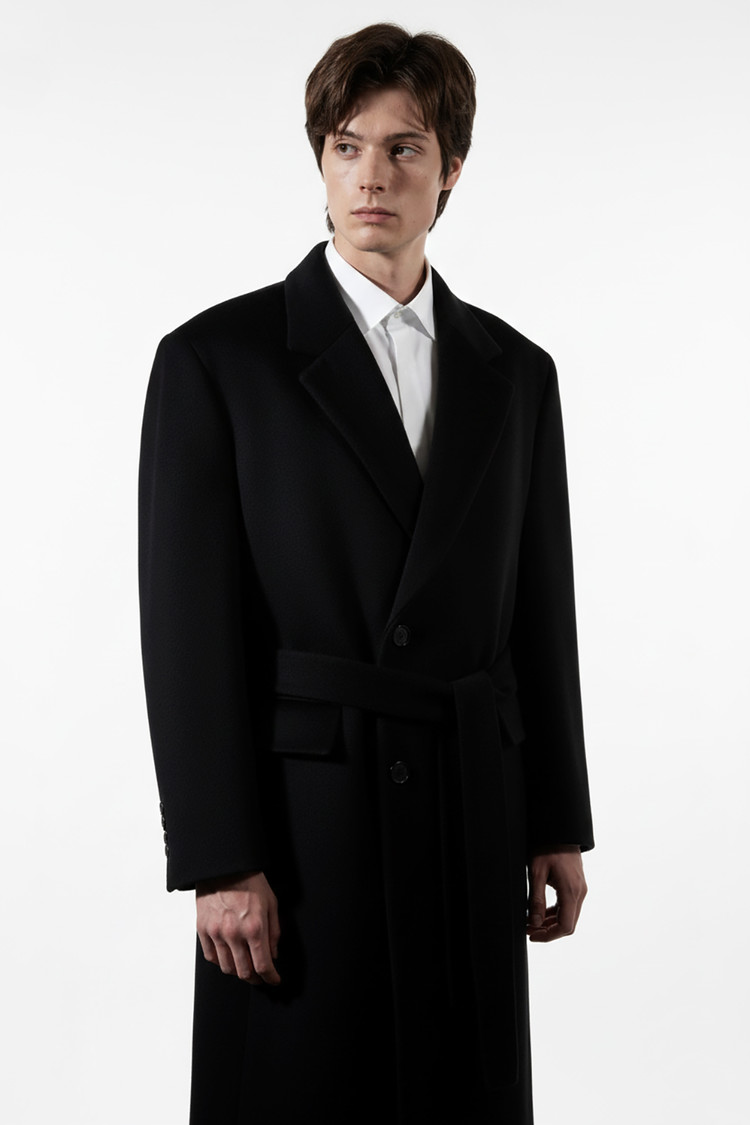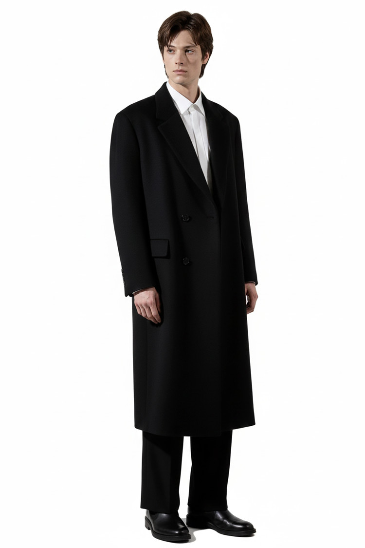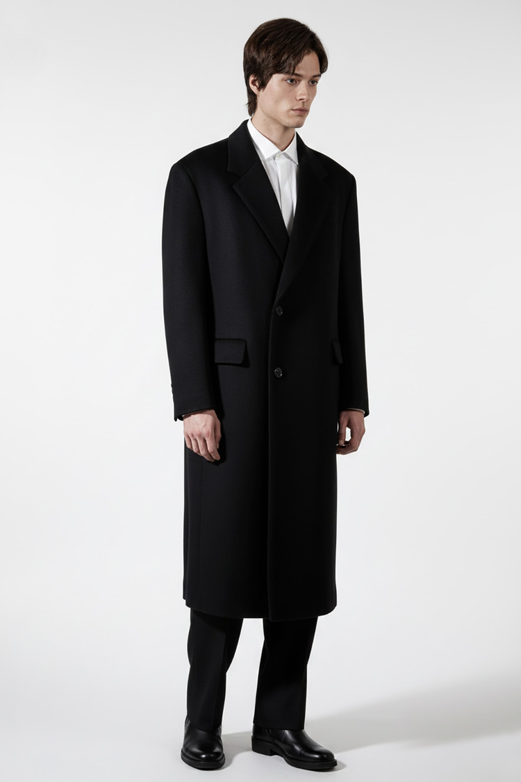 최고급 캐시미어 50% + 울 50% / 색상 BLACK 블랙 / 소뿔단추 100%