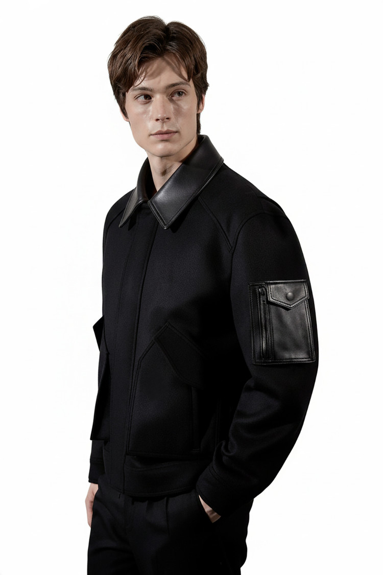 LUXURY 캐시미어 100% MA-1 블랙 가죽 배색 점퍼SALE