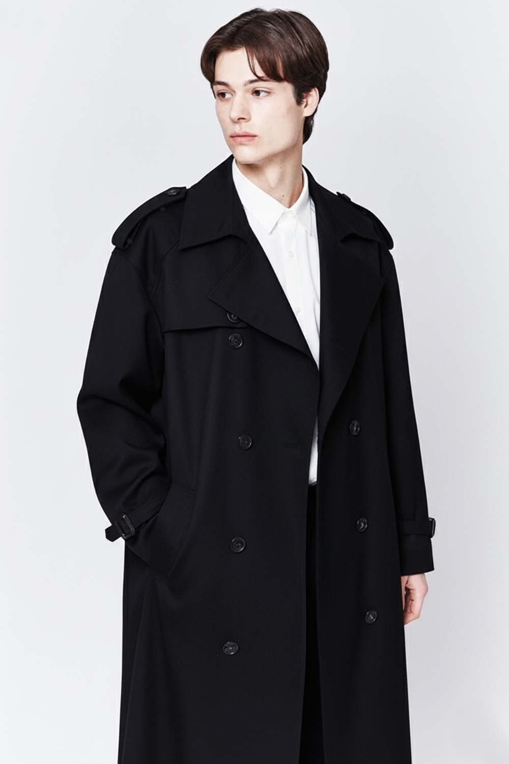 코트를 입었을때 전체적인 실루엣이 일자로 곧게 떨어지며 군더더기 없는 남성복 트렌치 코트 최고의 핏을 자랑합니다.