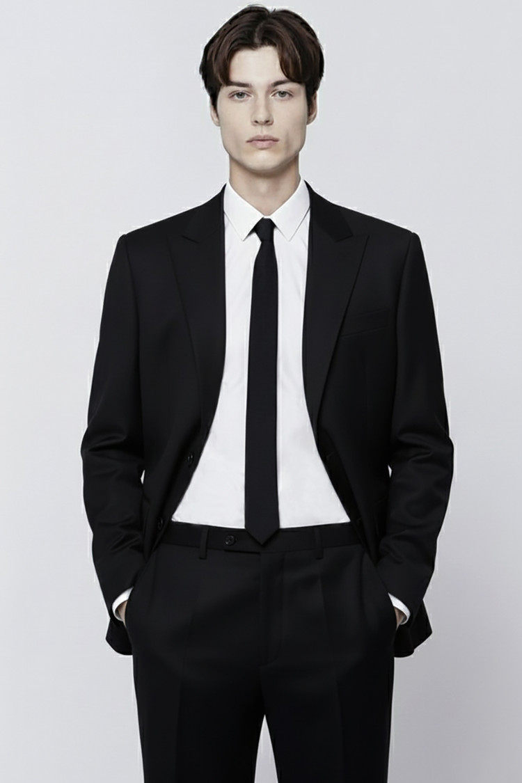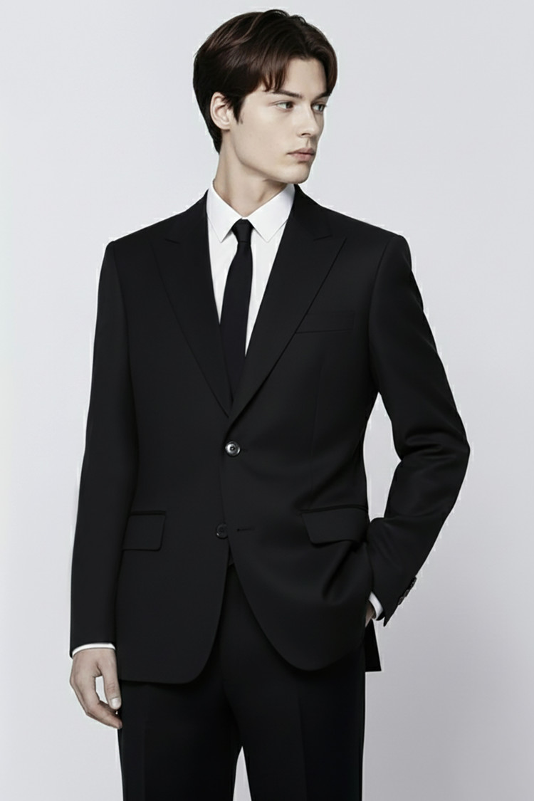 ANGELICO 안젤리코 이태리 슈퍼 120수 울 100% 클래식 피크드카라 싱글 블랙 수트SALE