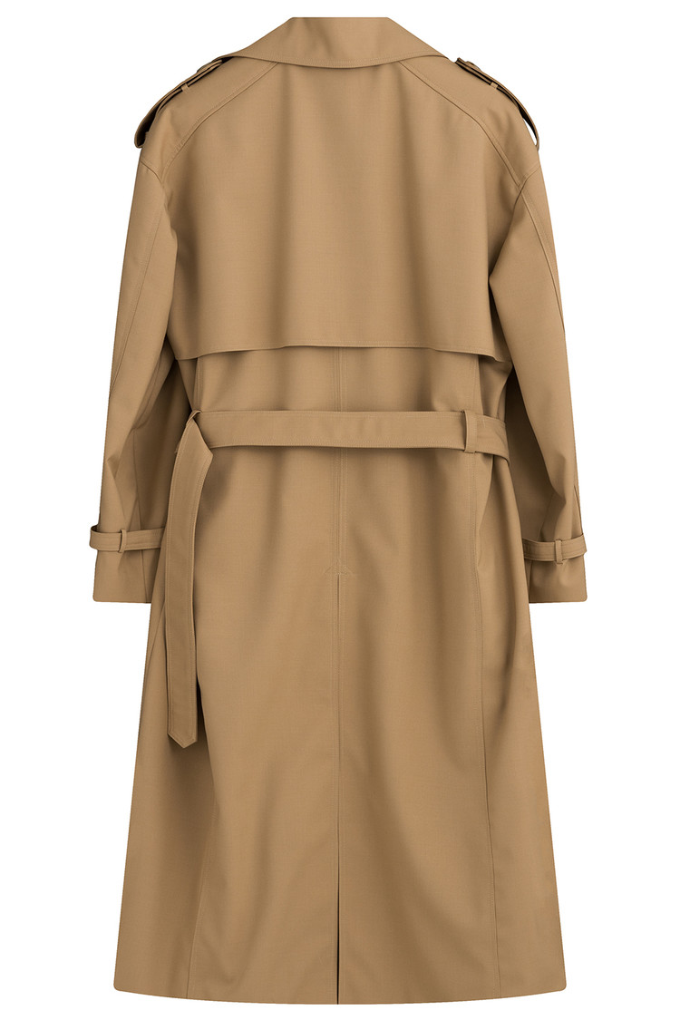 HIGH-END 럭셔리 개버딘-울 100% 베이지 롱 트렌치코트SALE