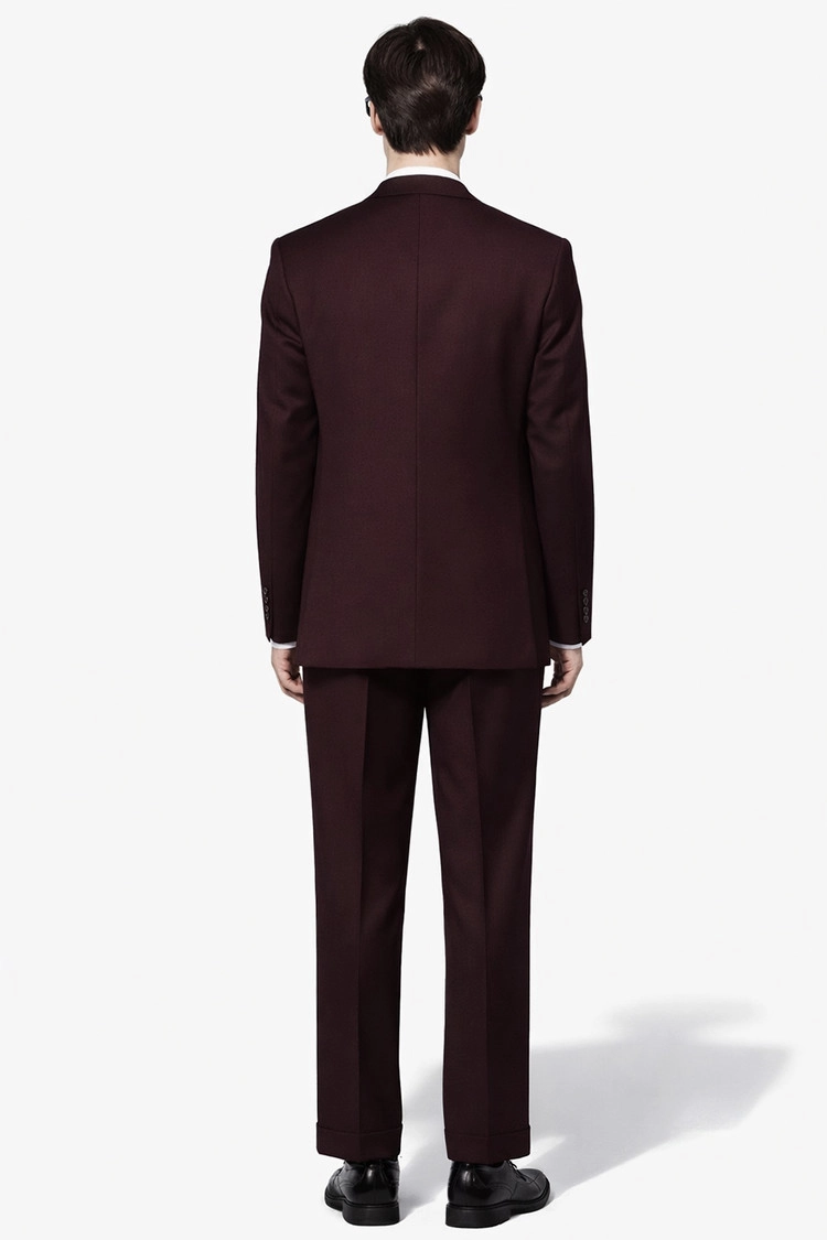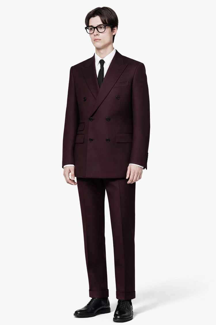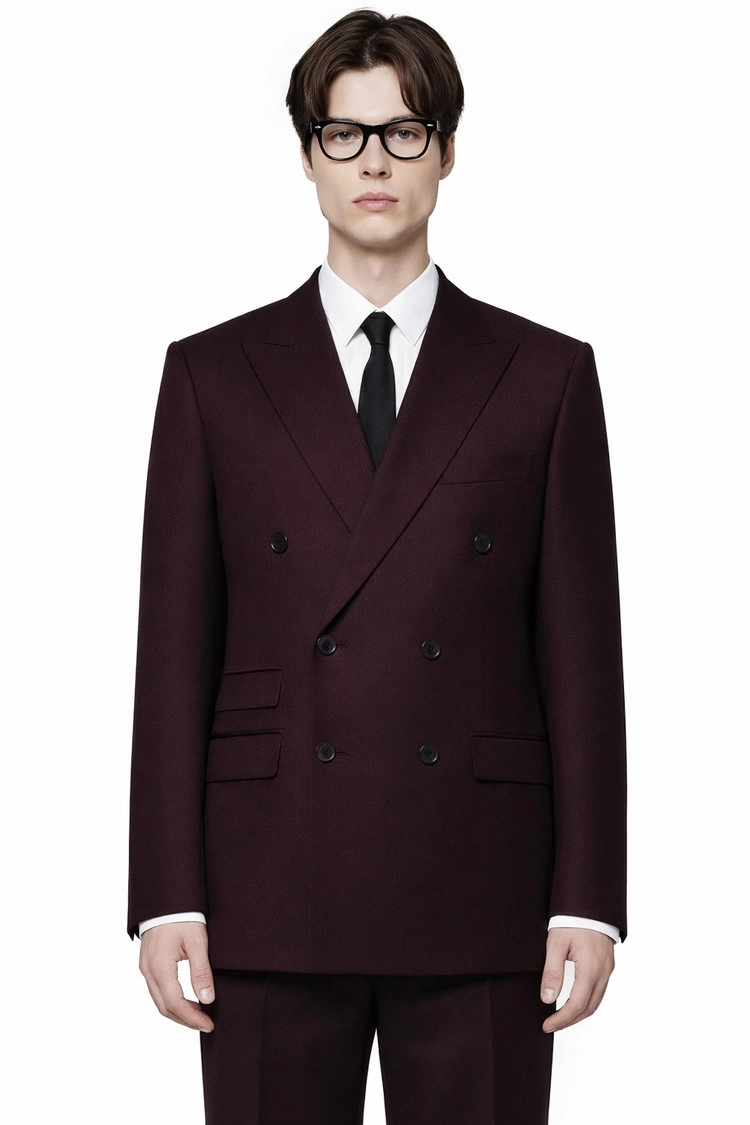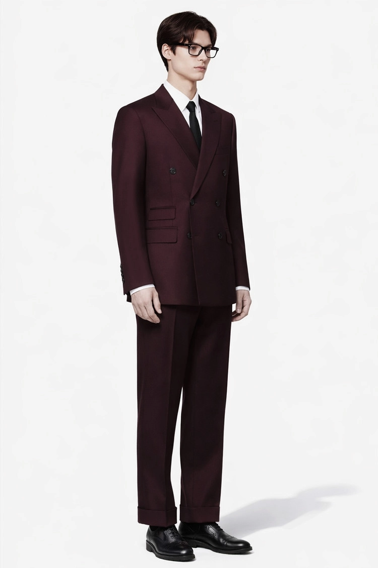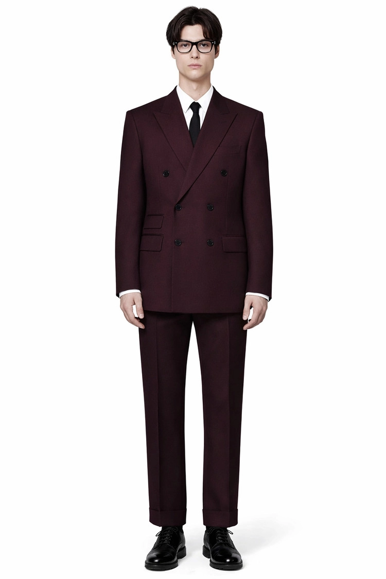 HIGH-END 클래식 테일러드 이중포켓 더블 버건디-와인 개버딘-울 100% 수트SALE