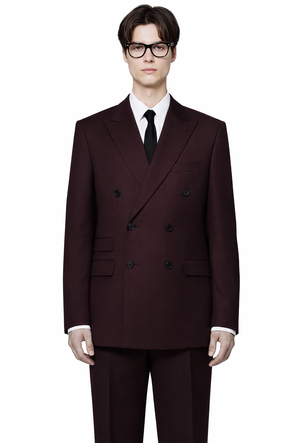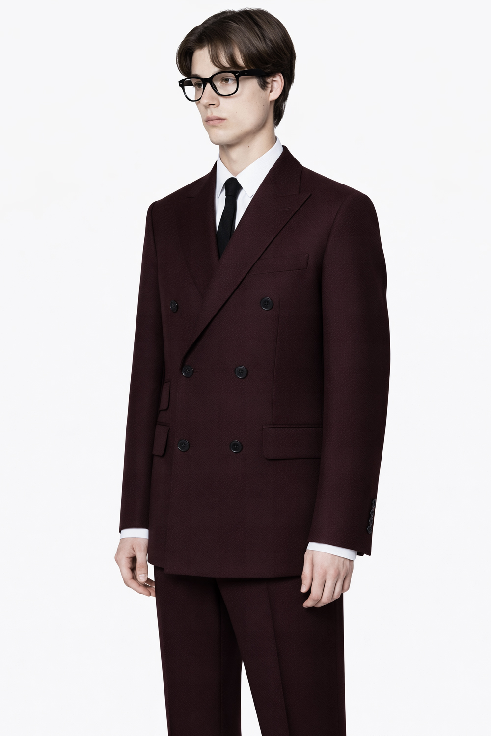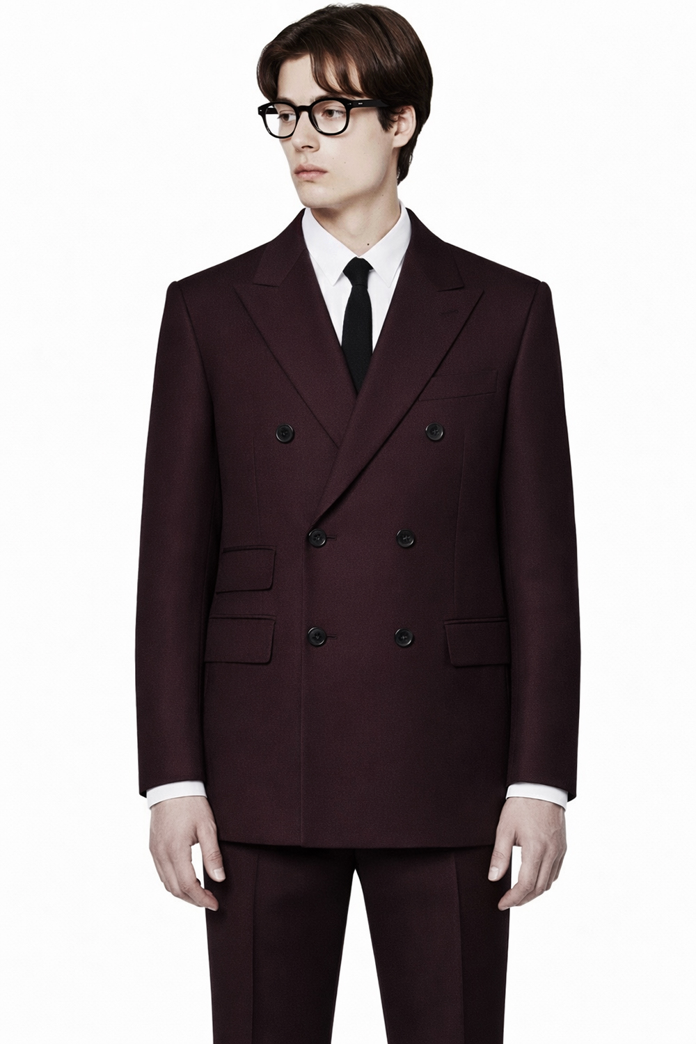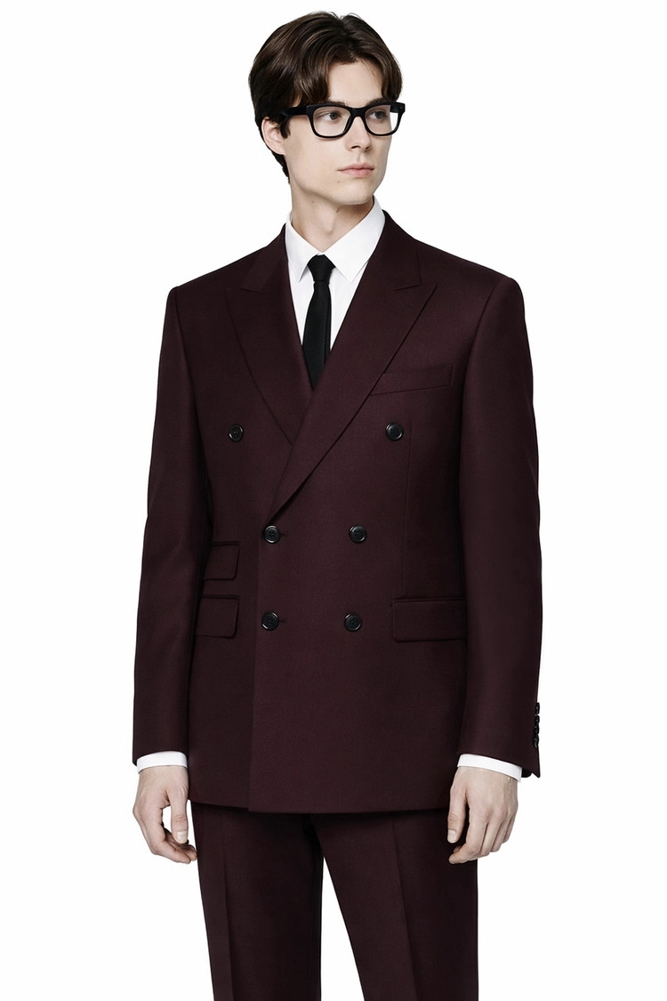 HIGH-END 클래식 테일러드 이중포켓 더블 버건디-와인 개버딘-울 100% 수트SALE