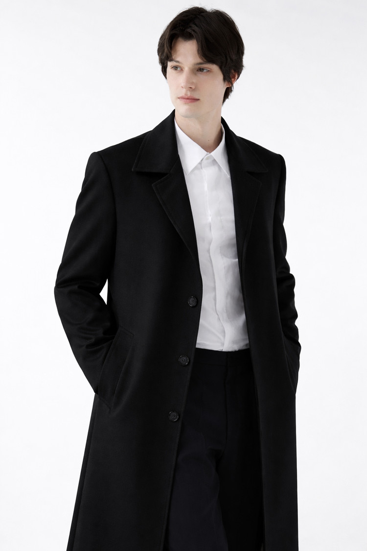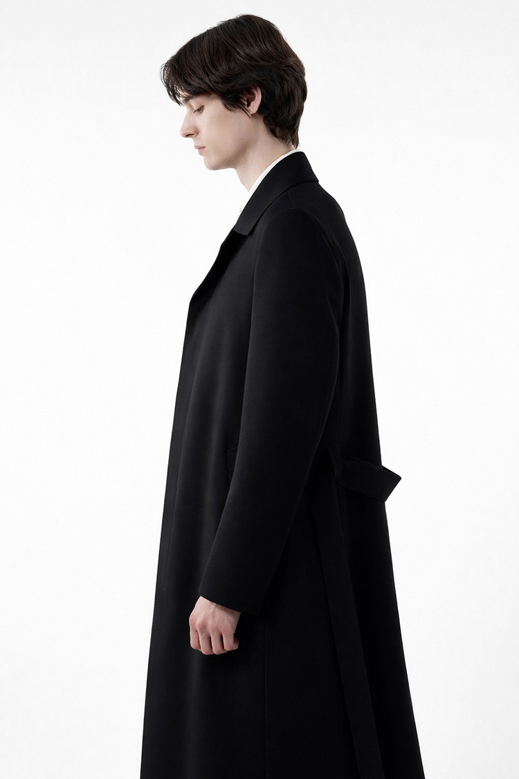 COLOMBO 콜롬보 이태리 슈퍼 120's 울 100% 발마칸 로브 맥코트 미니멀 딥-블랙 롱코트SALE