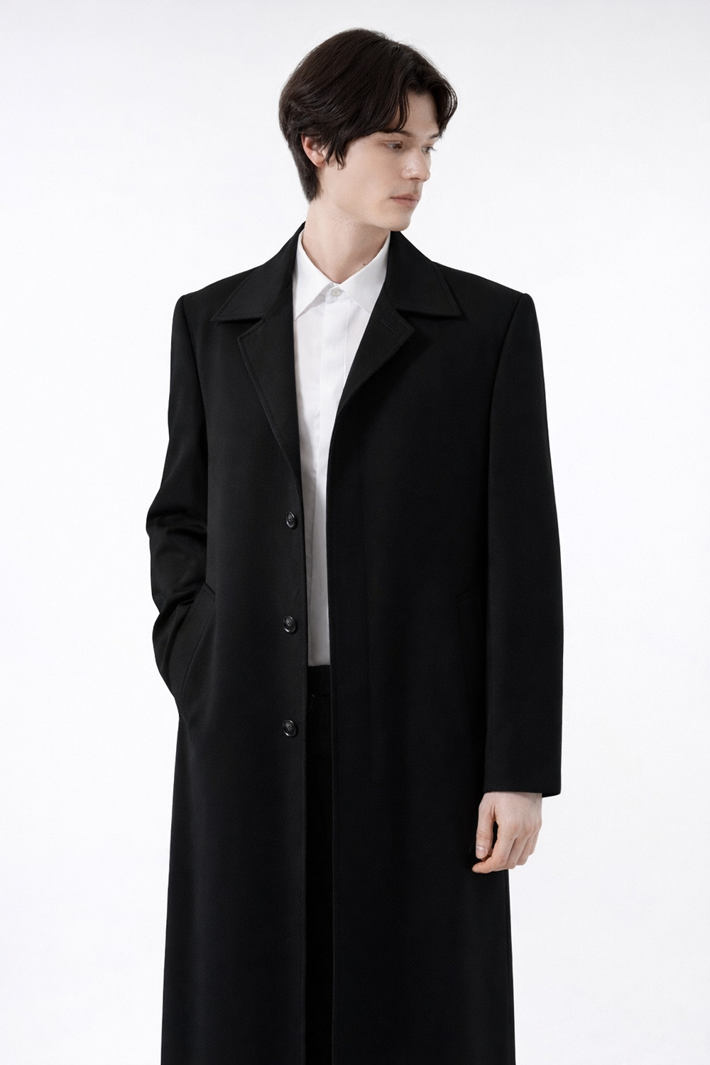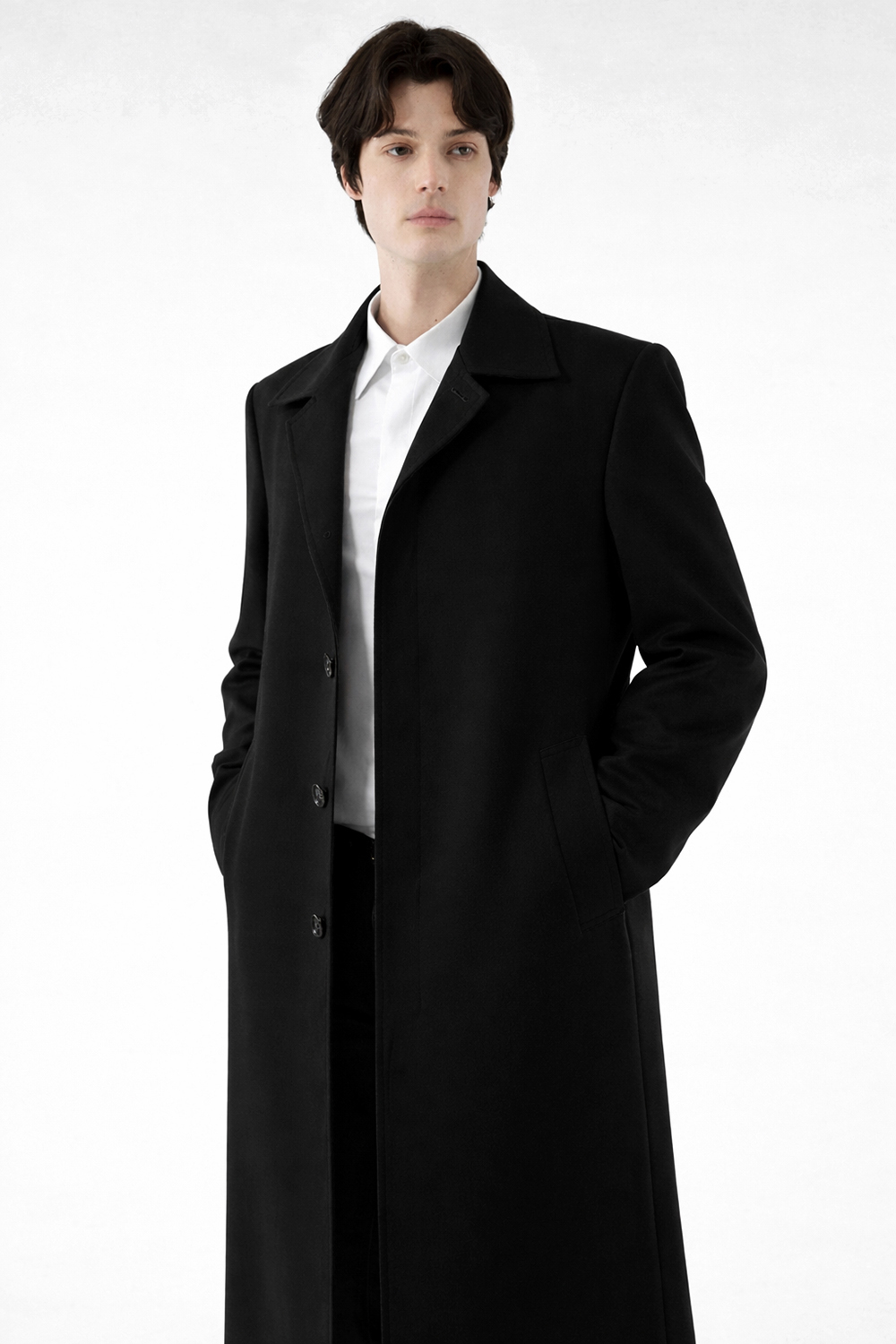 완벽에 가까운 자연스럽게 군더더기 없이 떨어지는 일자핏과 멋스러운 롱기장.