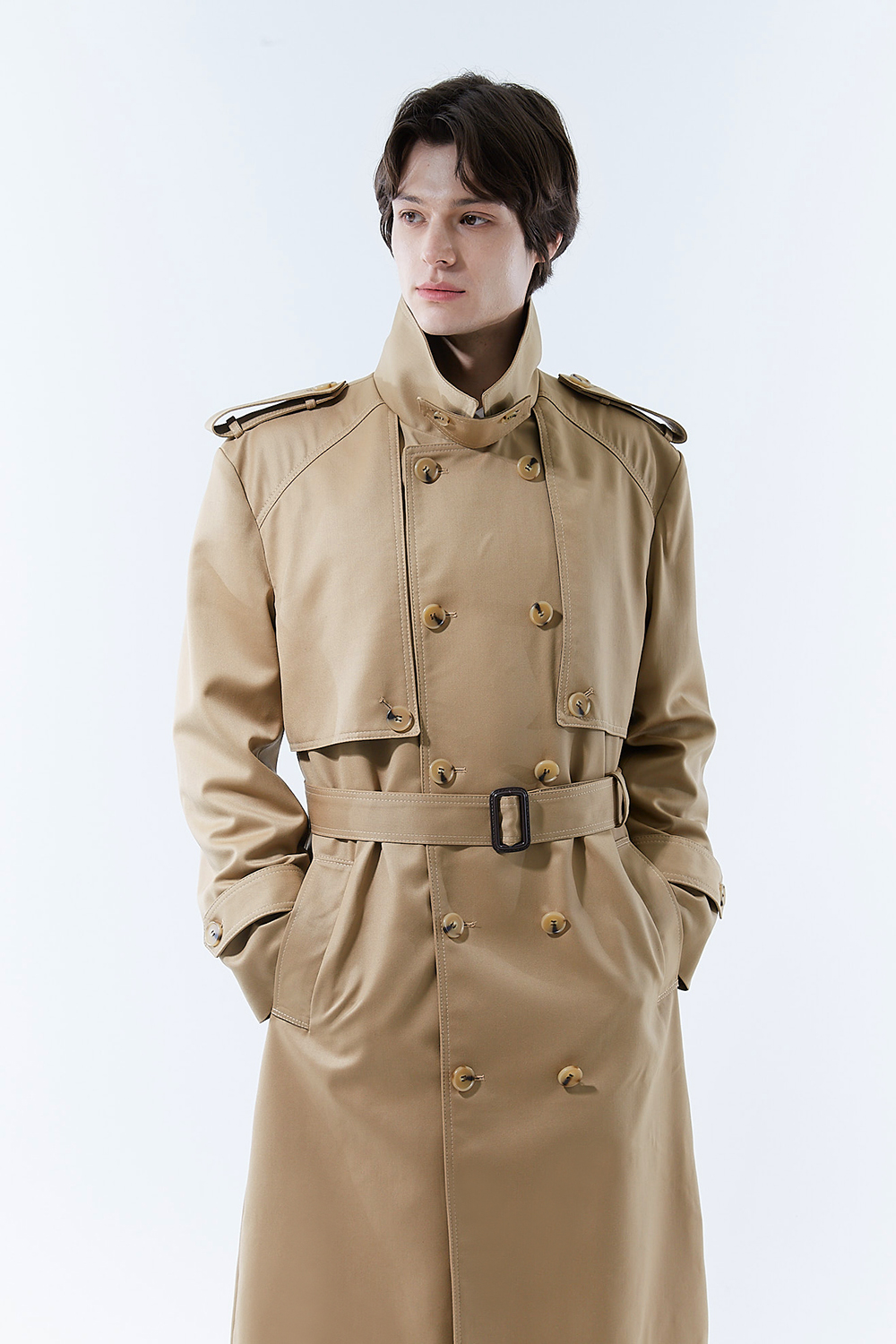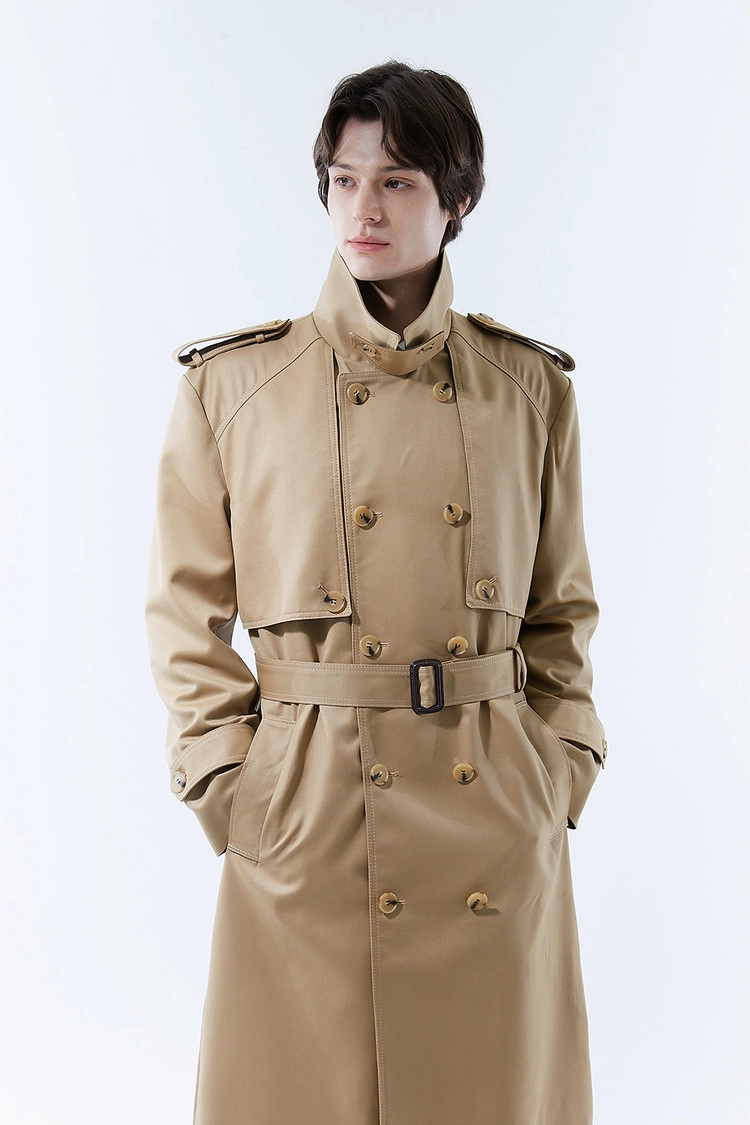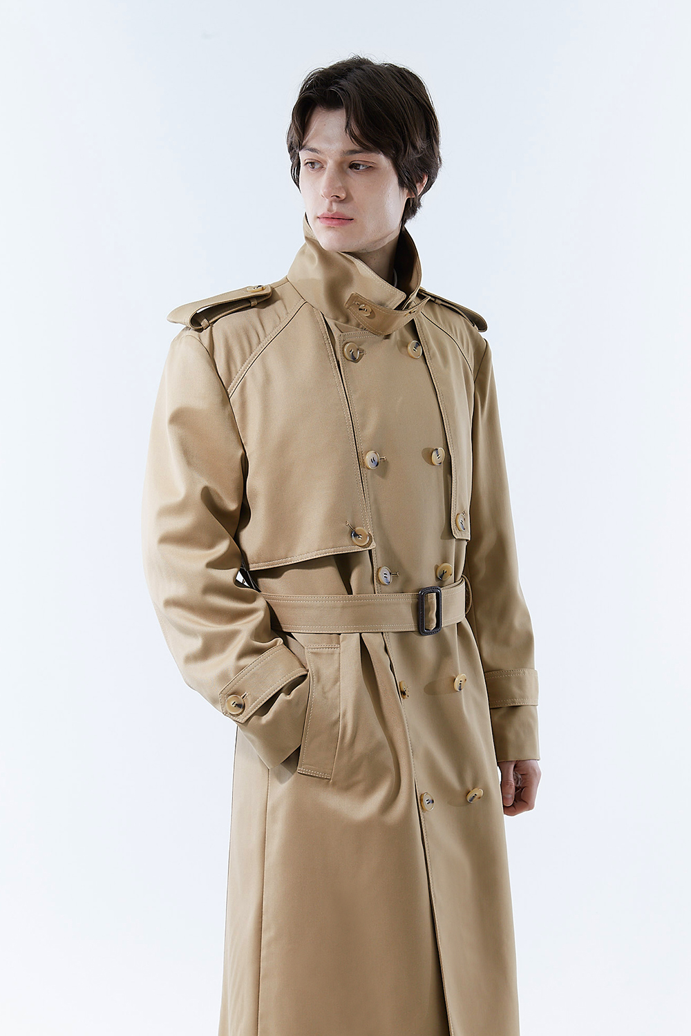 HIGH-END 울 100% 하이브리드 딥-베이지 롱 트렌치코트SALE